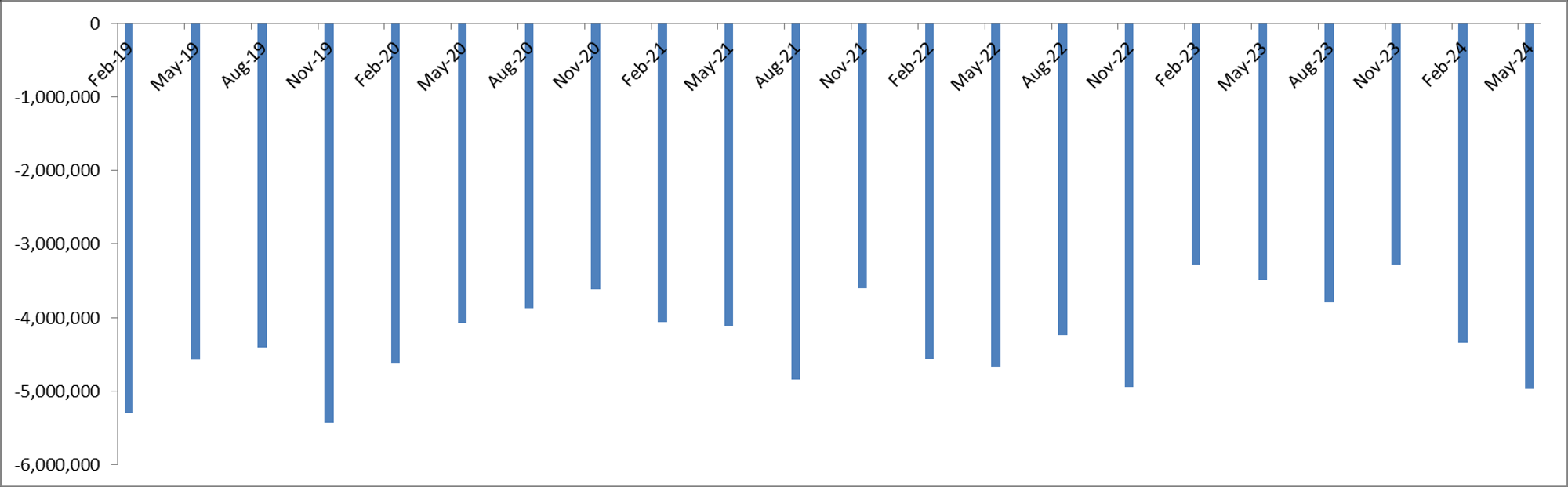 -CAPEX巨大,基本上12个月稳定资本投入在5B左右