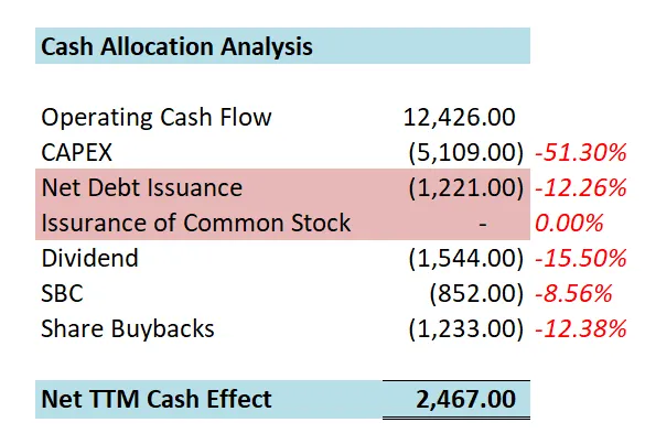 -CAPEX巨大,占FCF 71.05%