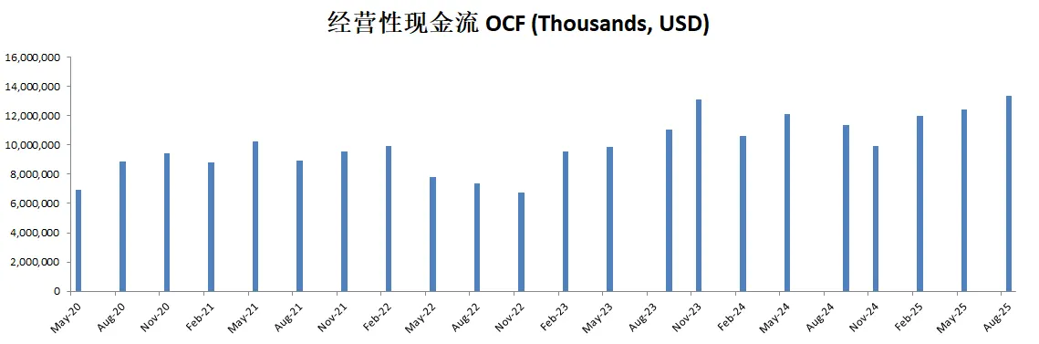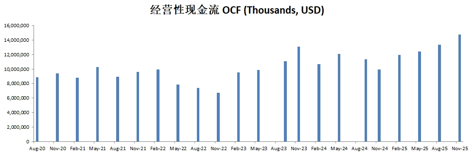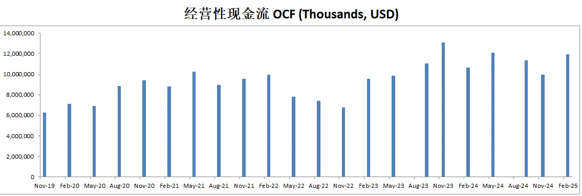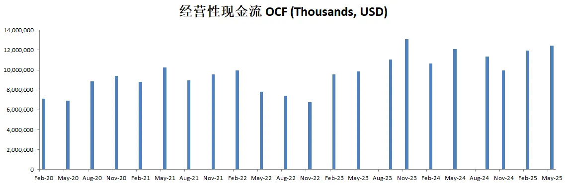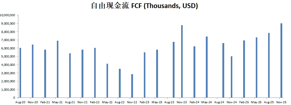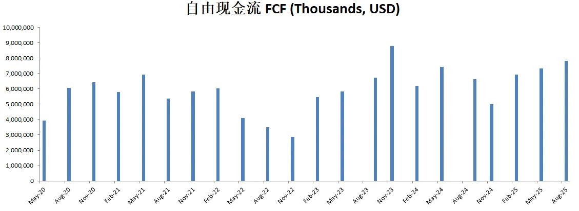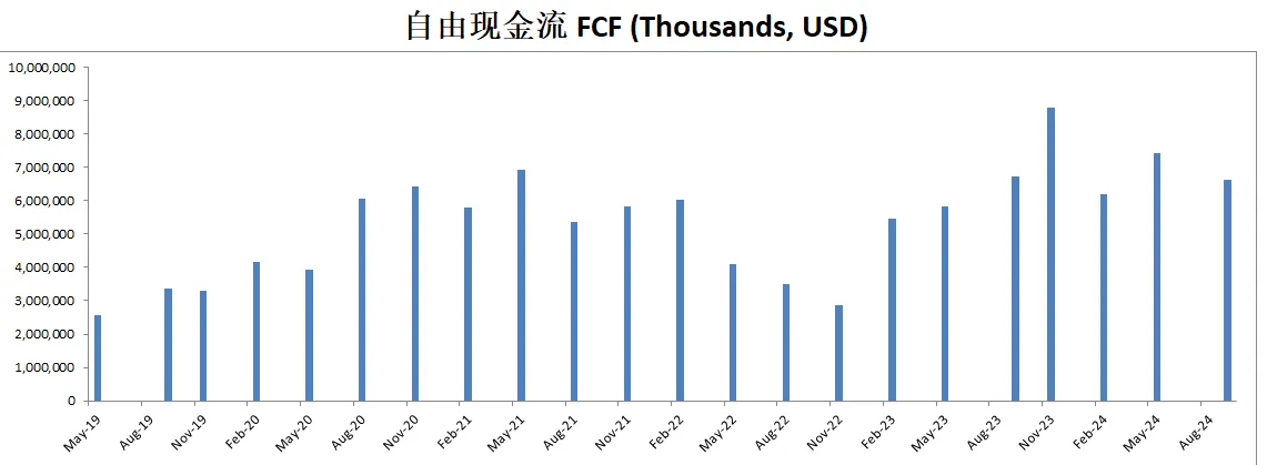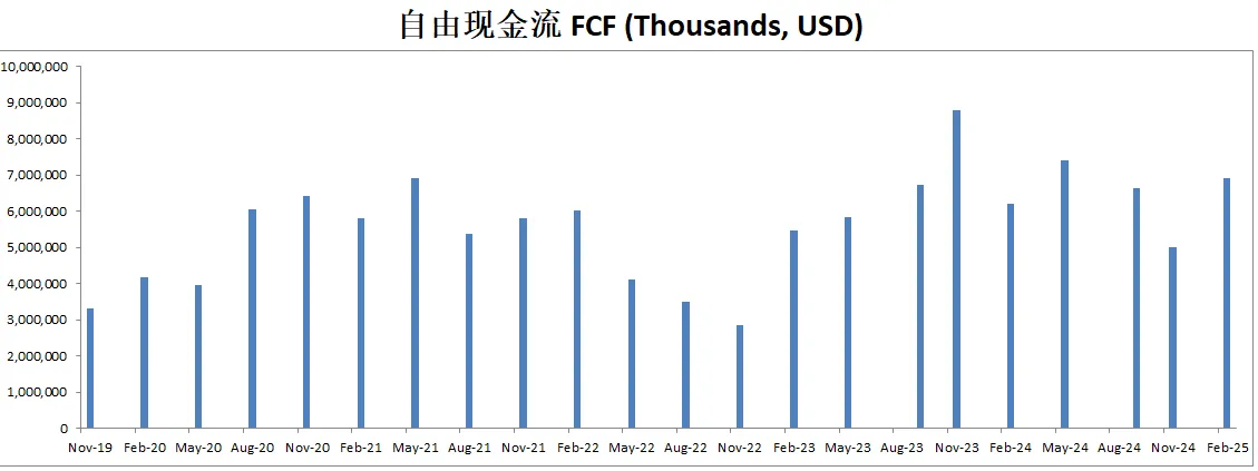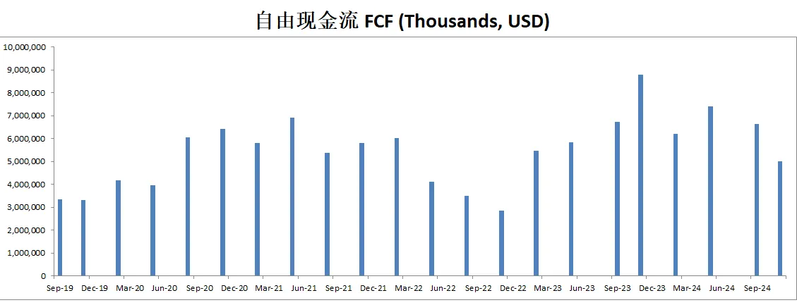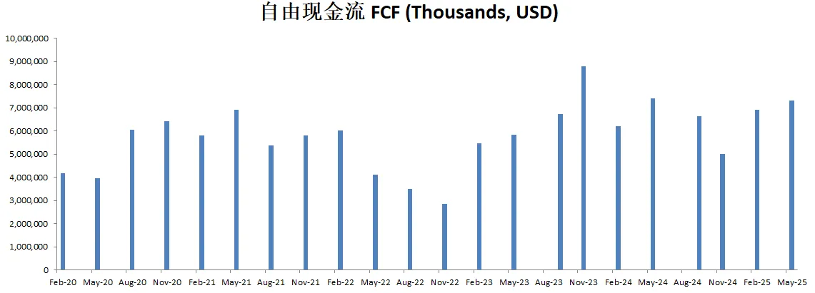 FCF最新为7.42B,5年CAGR有18.38%,这个增长相当的快