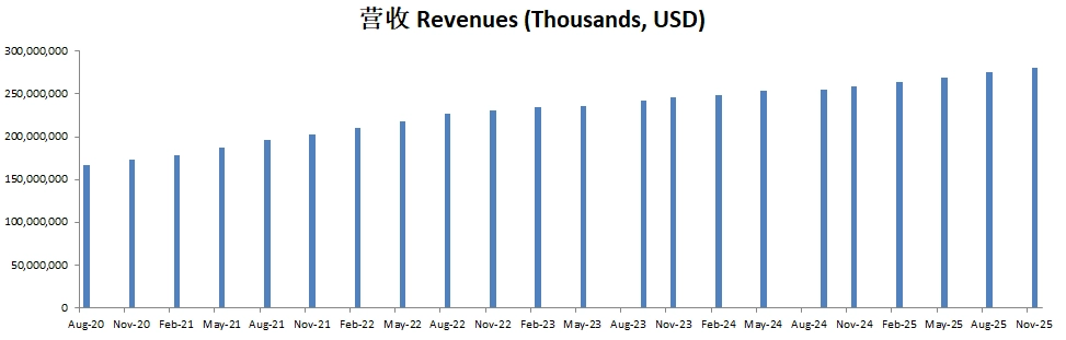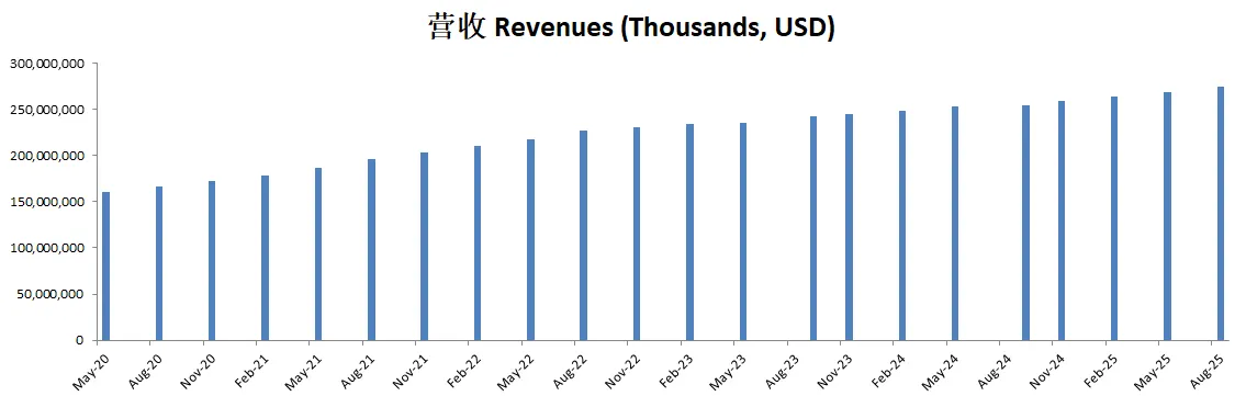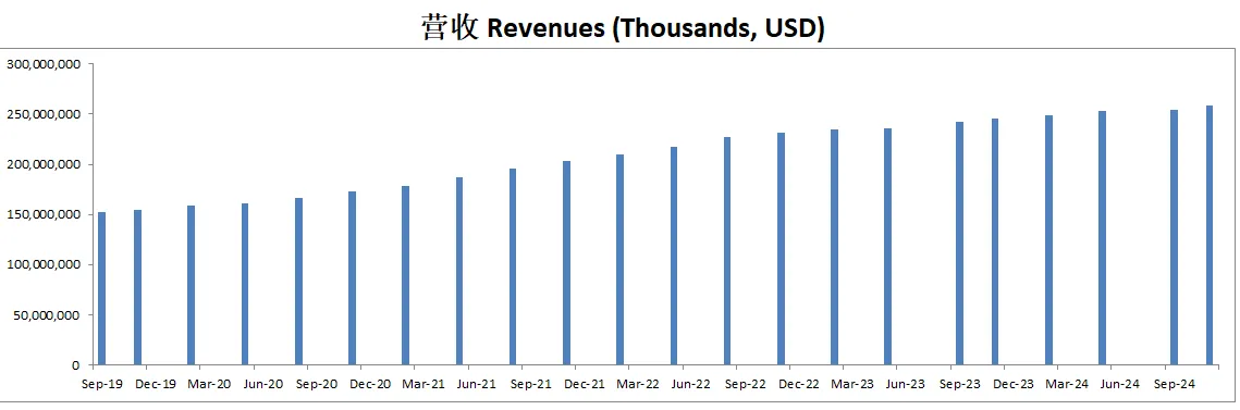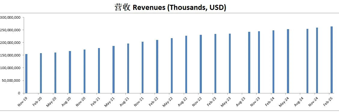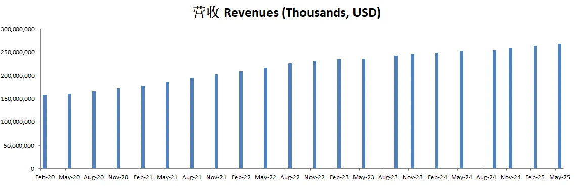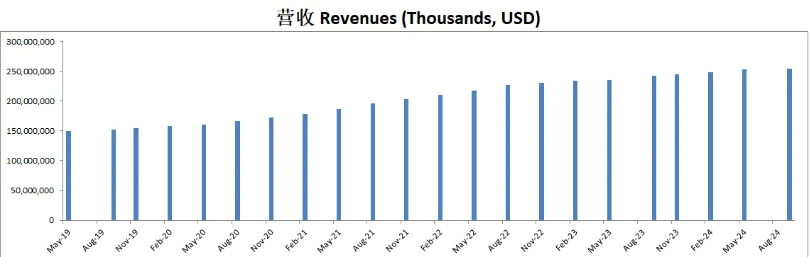 营收刷新新高,来到了253.7B,5年CAGR有11.42%