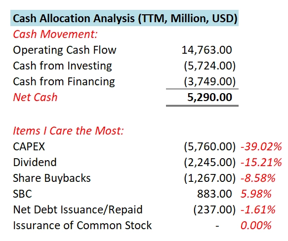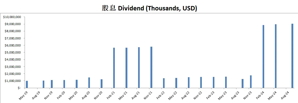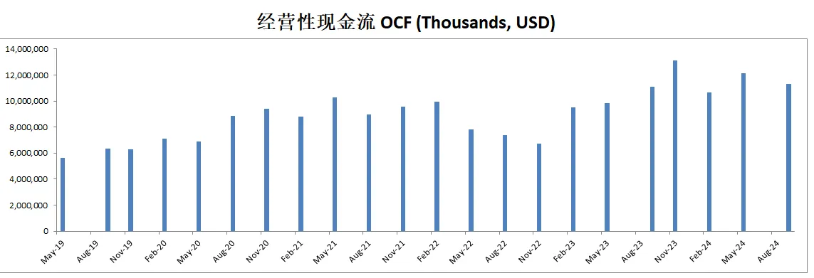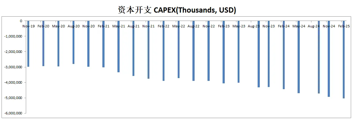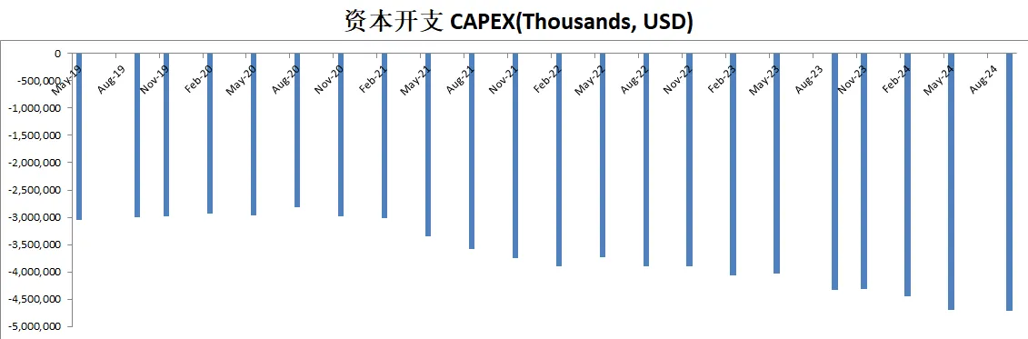 公司12个月CAPEX为4.69B,不过公司ROIC这么高,巨额的投入带来了非常大的增长