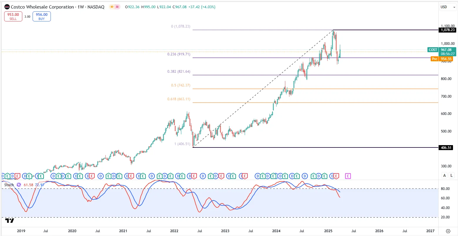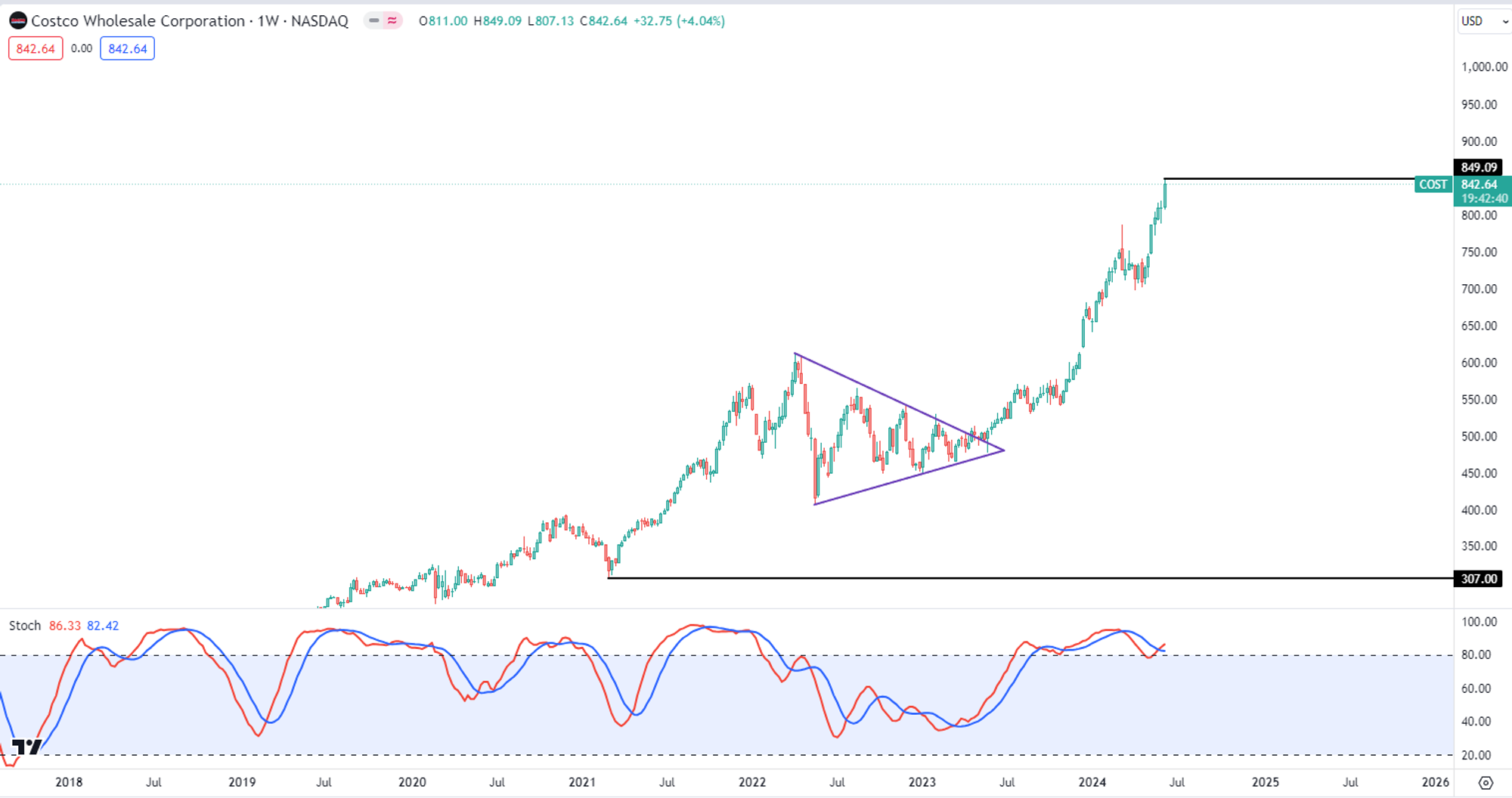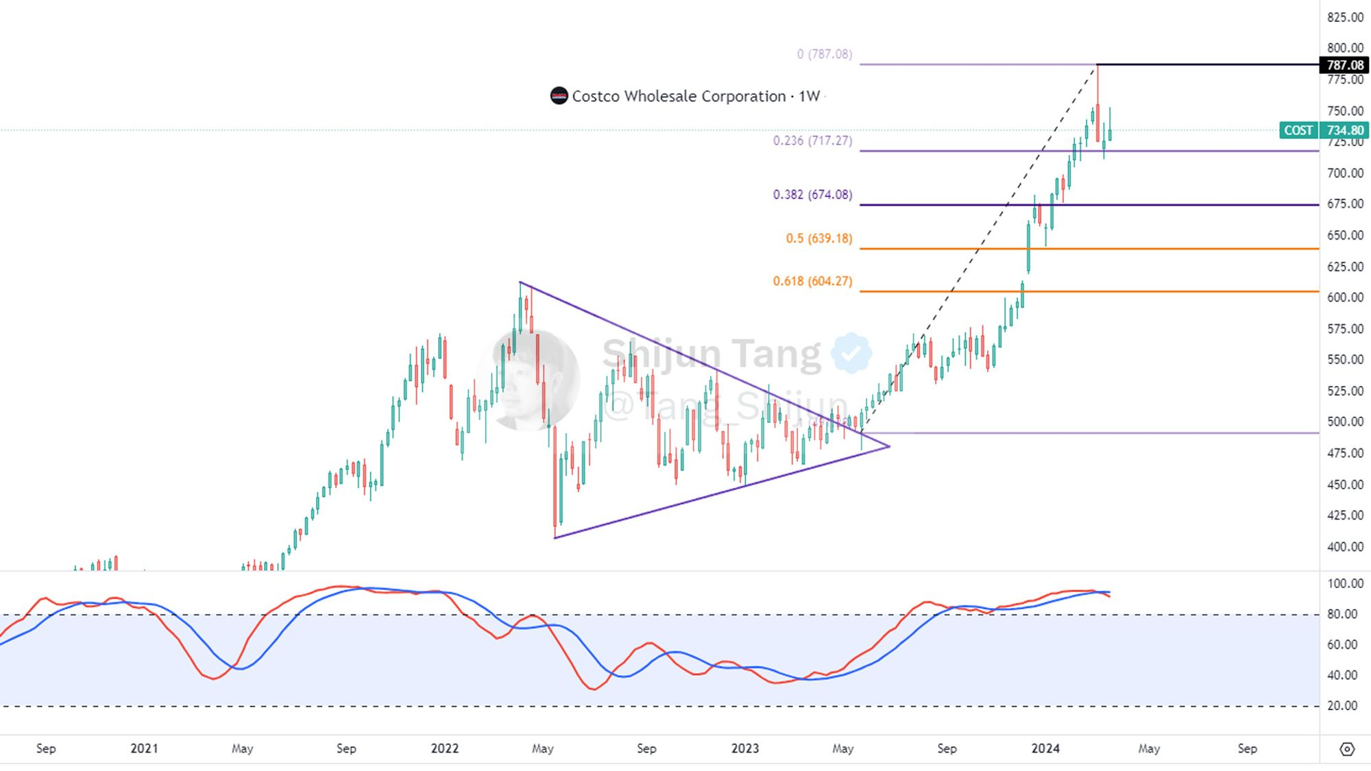 Costco 最近股价来到了历史峰值787.08