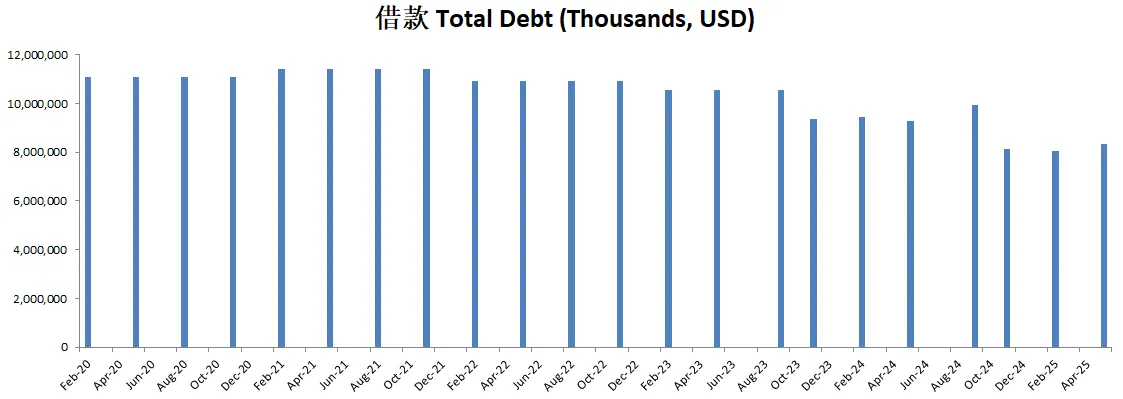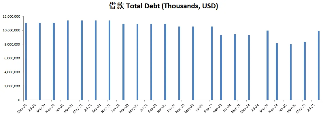 手里有11.5B现金,总借款只有6.91B,现金可以直接还清借款