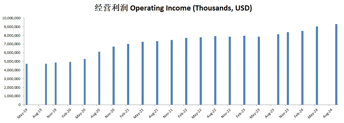 -营收刷新新高,经营利润刷新新高,利润率有3.75%,这里利润率的确很低,不过,这是Costco的特点。