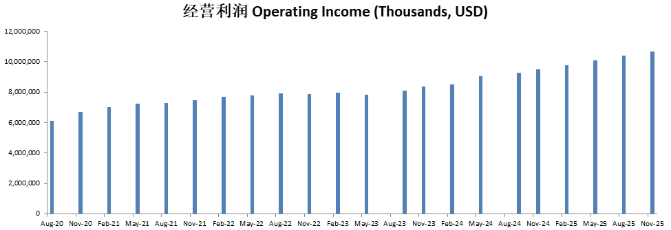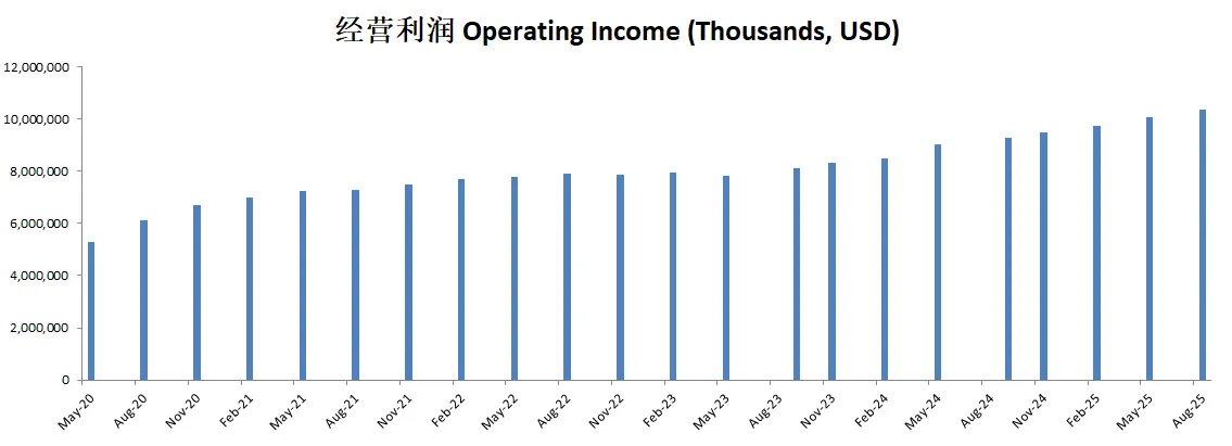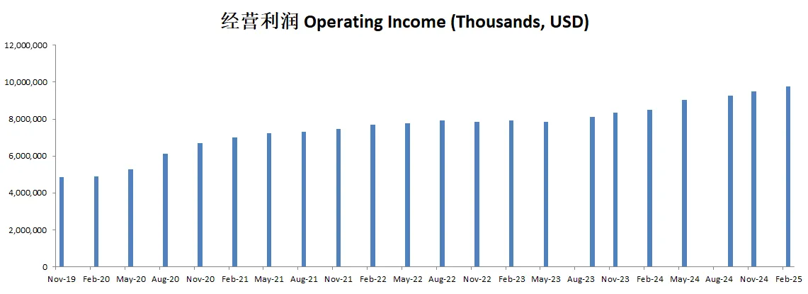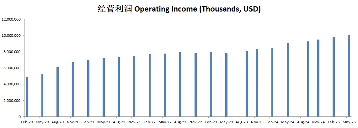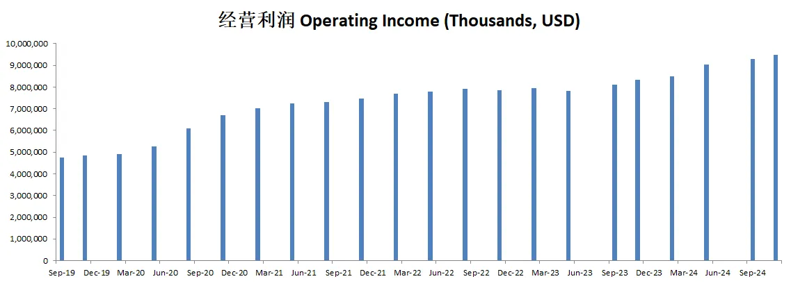 经营利润刷新新高,来到了9.02B,5年CAGR有14.71%