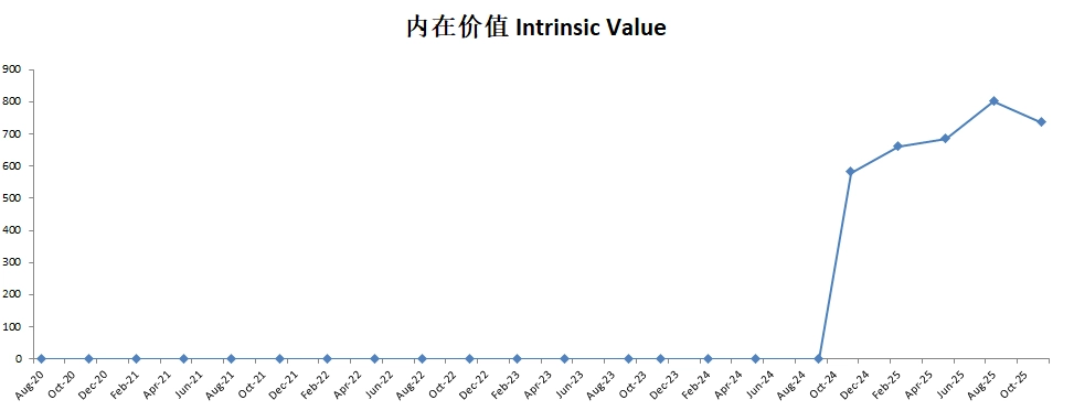 -最新财报之后,如果基于6B的有效现金流,14.45%的现金流CAGR,合理价为898.60。目前股价任然没法提供安全边际。