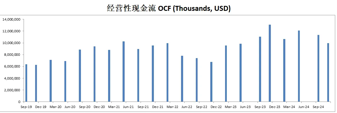 公司创造现金的能力值得肯定,9.02B EBIT能创造12.11B OCF