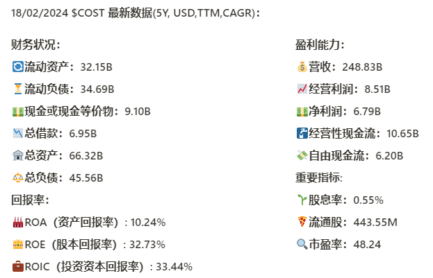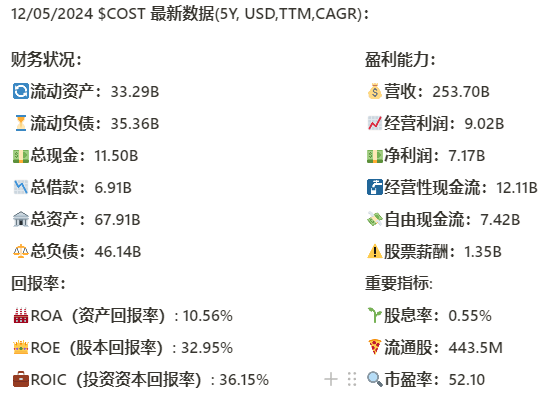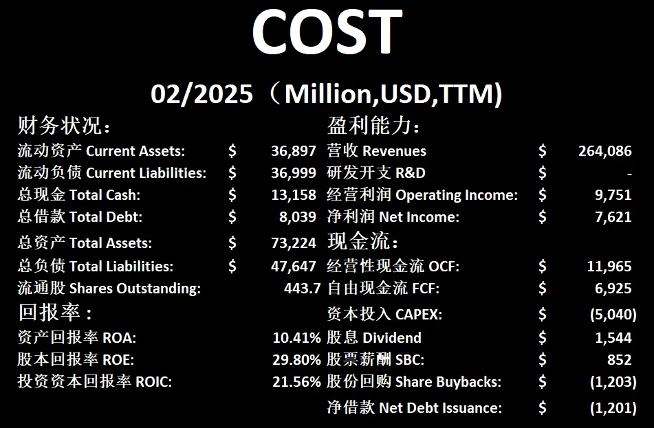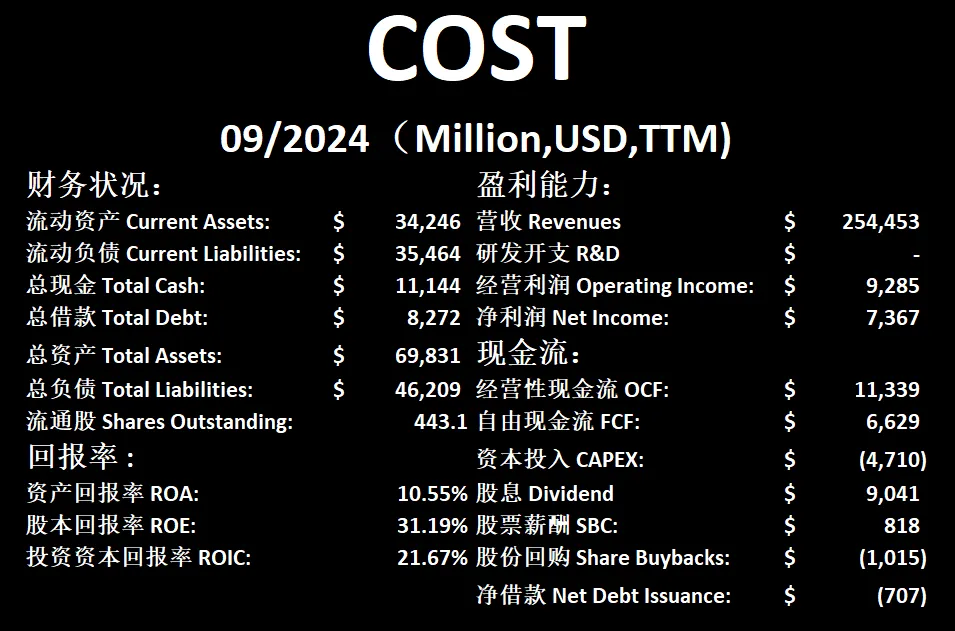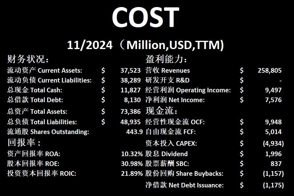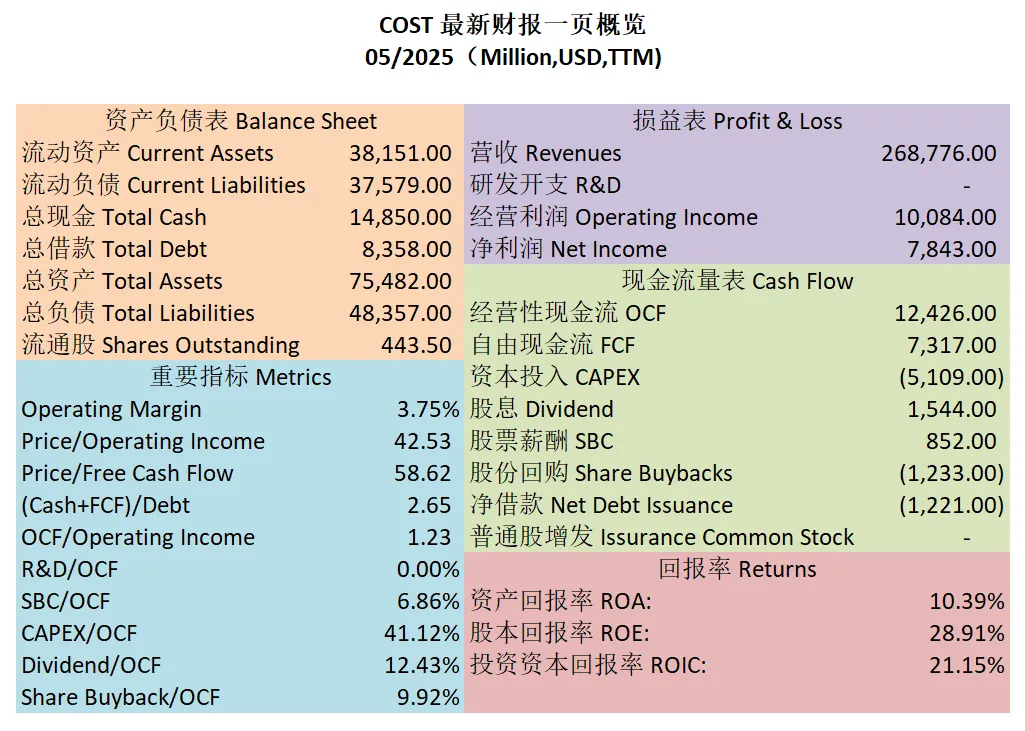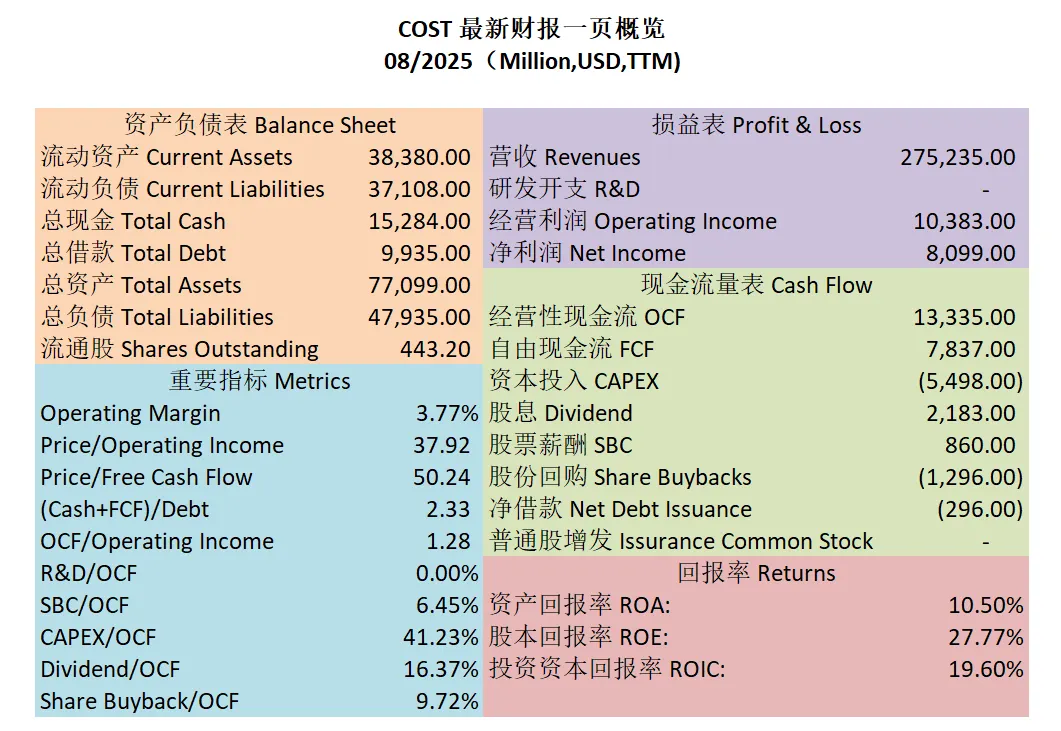 $COST 最新财报数据一页概览