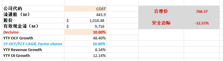 通过我的估值,Costco目前股价不存在安全边际