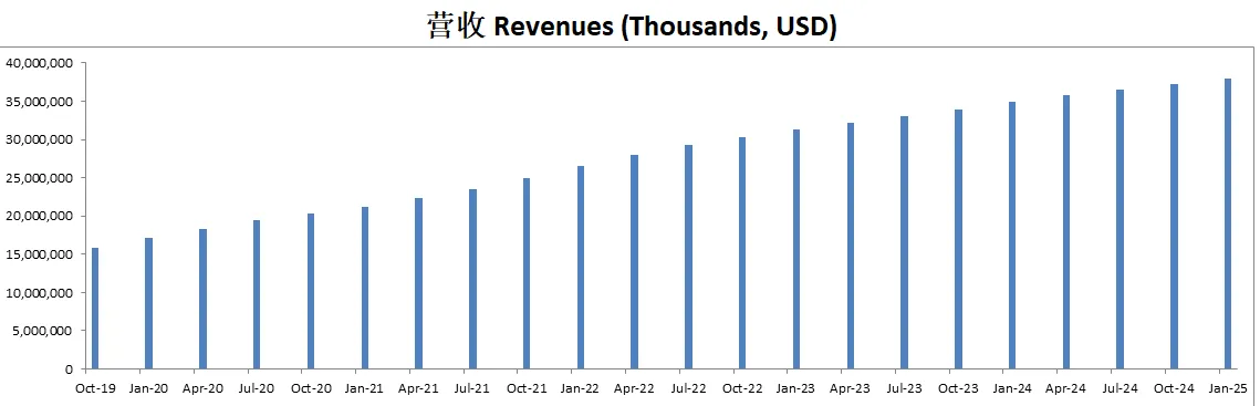 预计2025财年全年收入为 $37.7B 到 $38B,同比增长8%到9%。