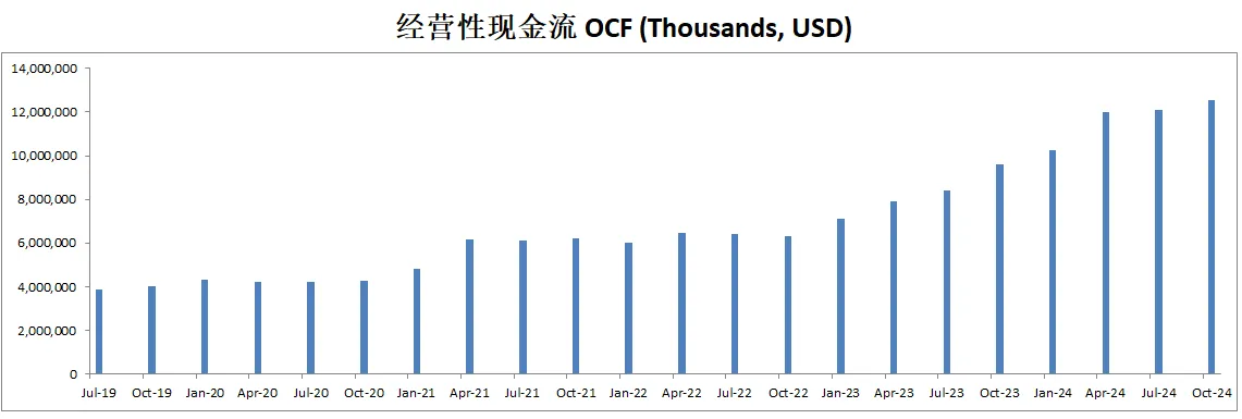 经营利润刷新新高,最新来到了6.59B,5年来CAGR有62.03%,这个增长率非常恐怖