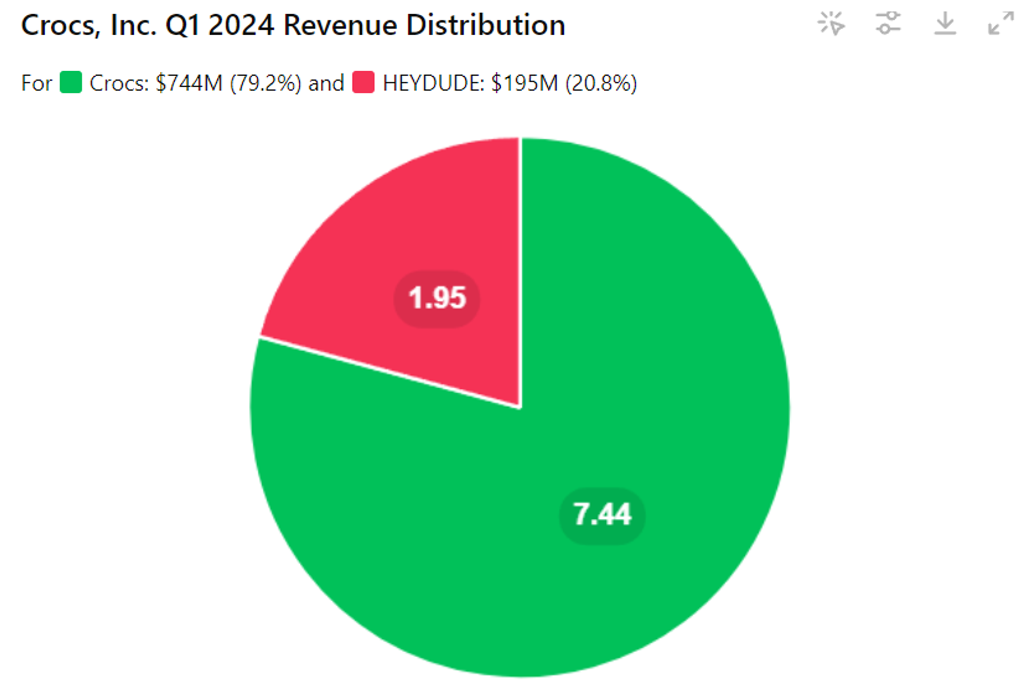 Crocs 品牌收入为744M 美元,同比增长16%