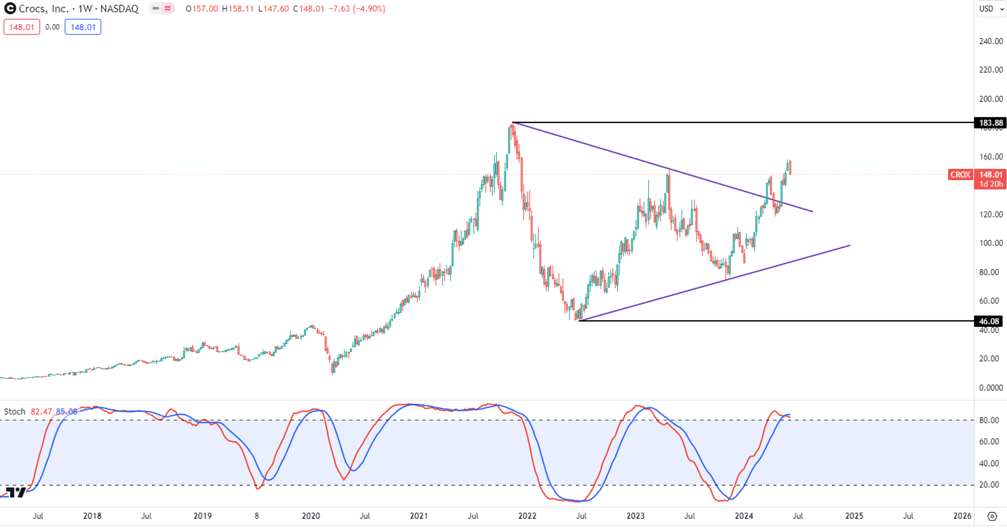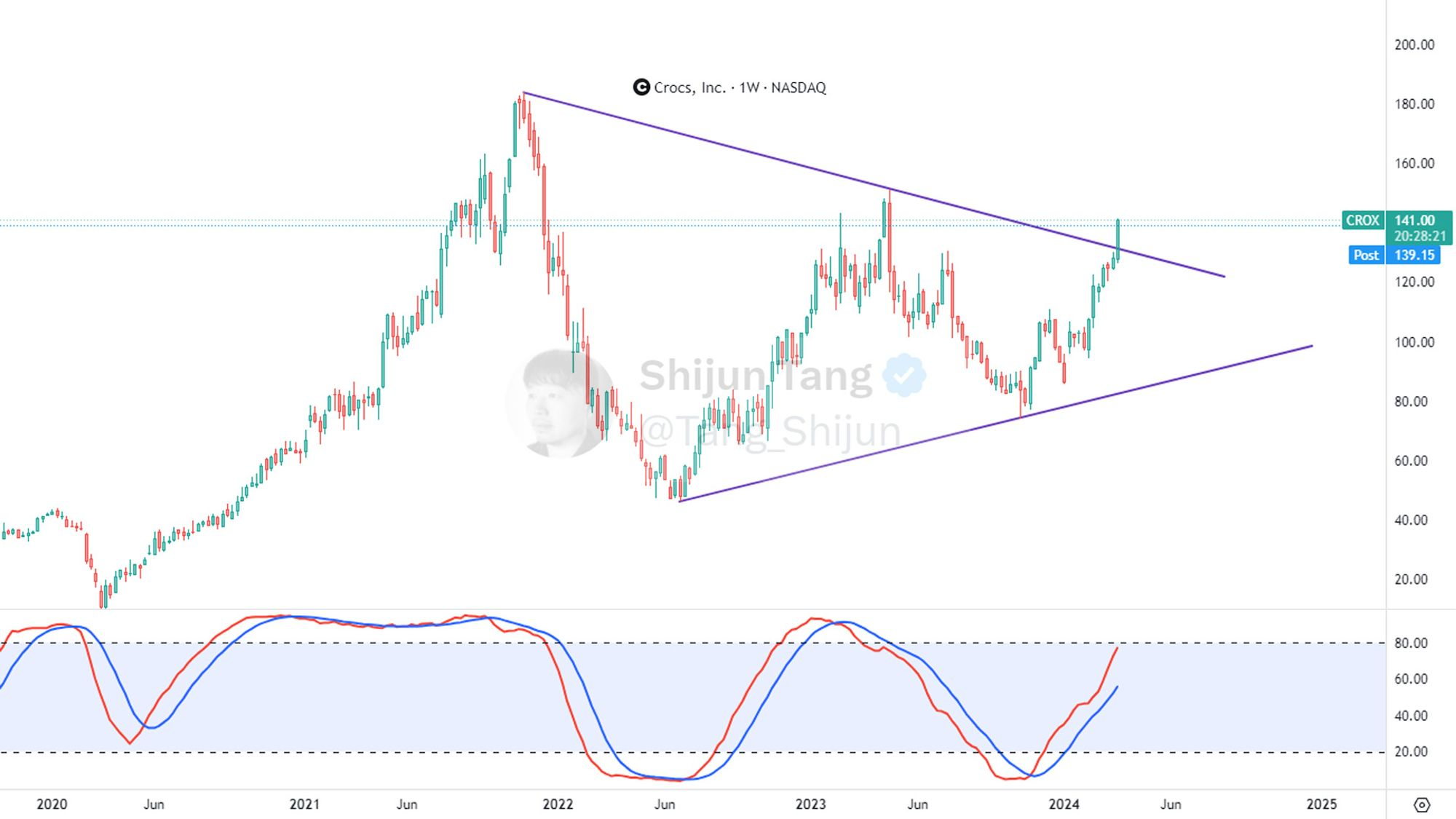 Crocs 鳄鱼鞋 ( $CROX )700天,也涨了242.88%了,翻了3.42倍