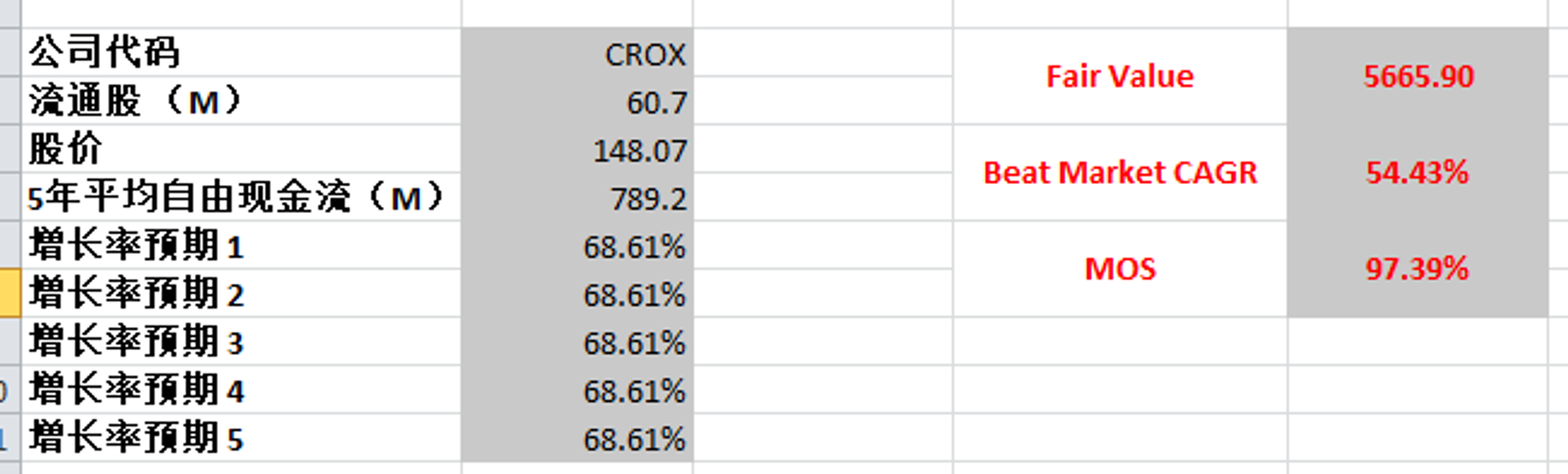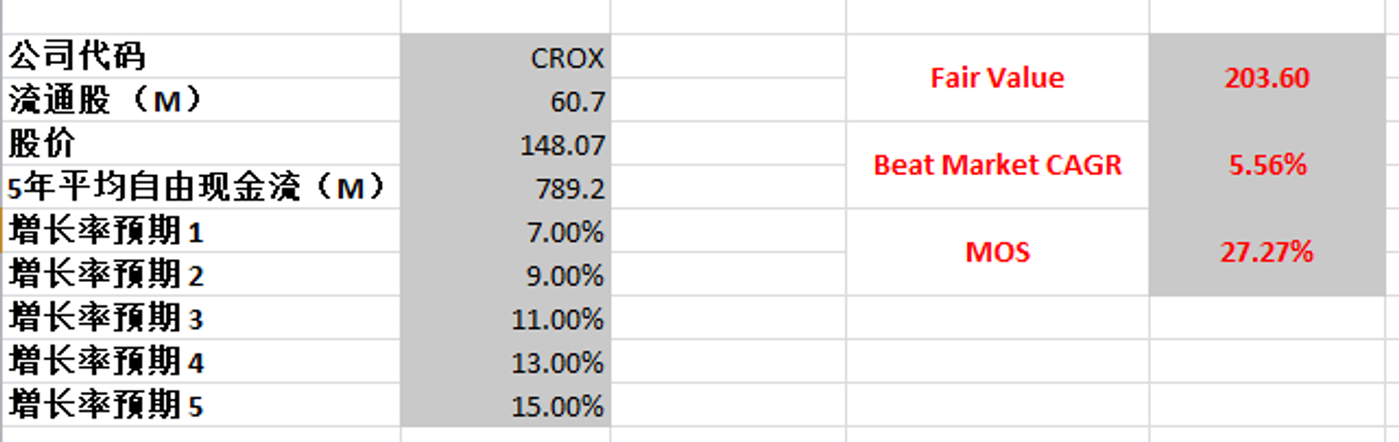 根据我的估值,CROX目前被市场低估了