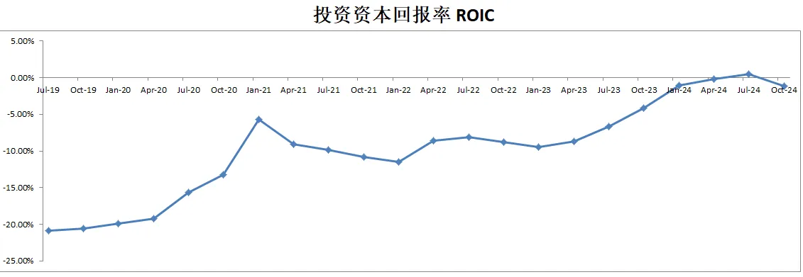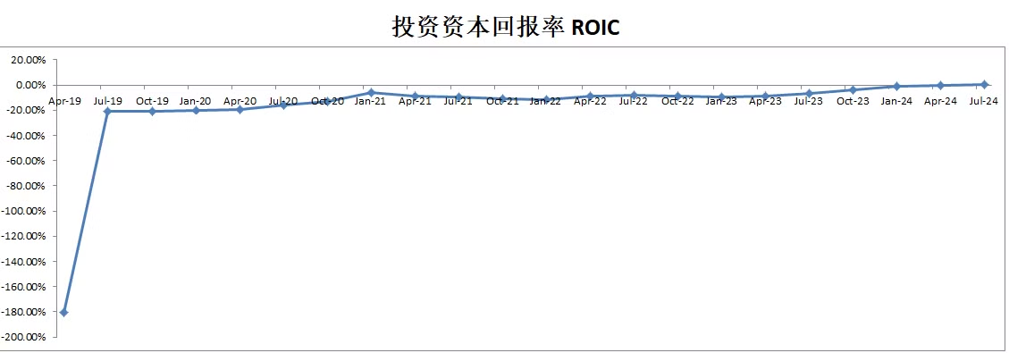 公司ROIC虽然一直在快速上升,暂时还是负的