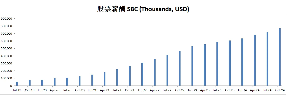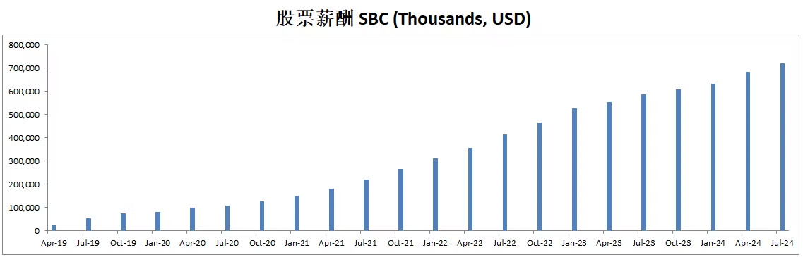 SBC目前开到了683.78M,5年CAGR有70.58%,占FCF比重为67%,可能管理层需要巨额奖励的激励才能有动力上班吧