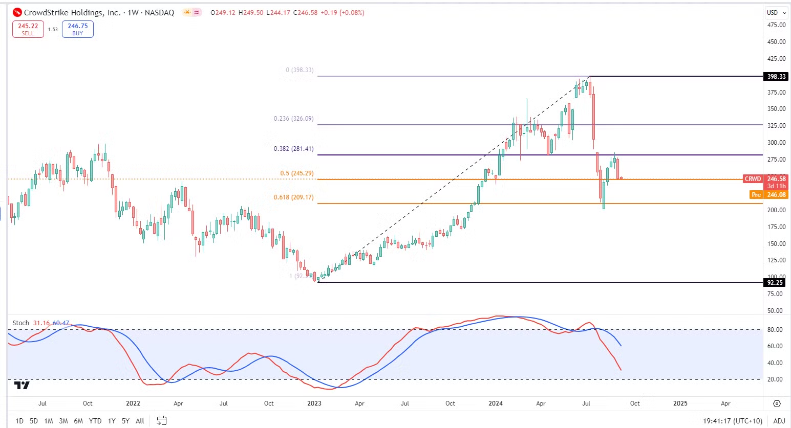 $CRWD 自从更新包Bug导致全球IT瘫痪之后,已经一度跌了49.59%,股价掉了一半!