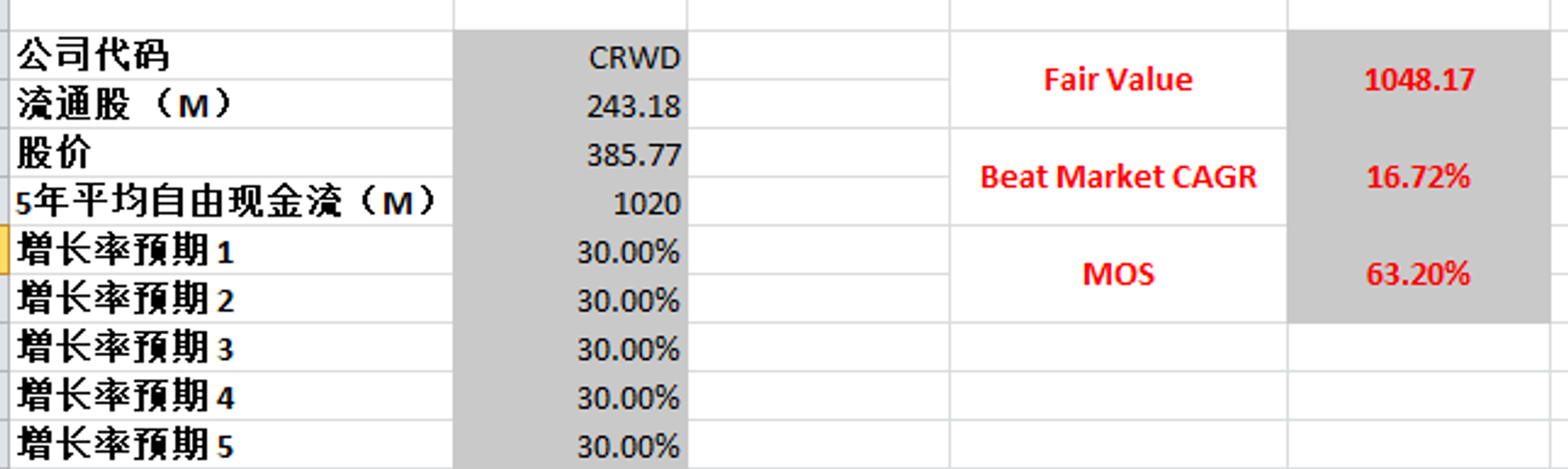 通过我的估值,目前市场已经给CRWD一个从目前最新体量仍然能有15%增长的预期,在我看来,可能还是过于乐观了,我认为暂时CRWD没有安全边际