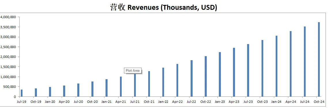 营收刷新新高,3.28B,5年CAGR有60.11%,增长非常快