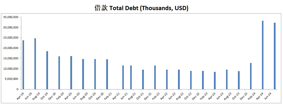 最新季度发行了17.19B借款,12个月发行了20.37B借款