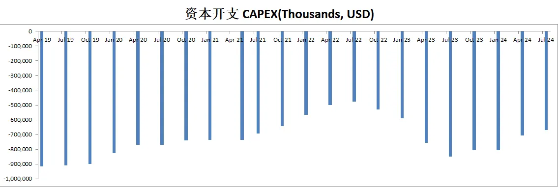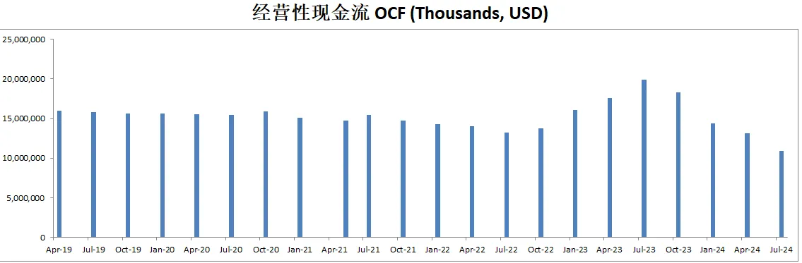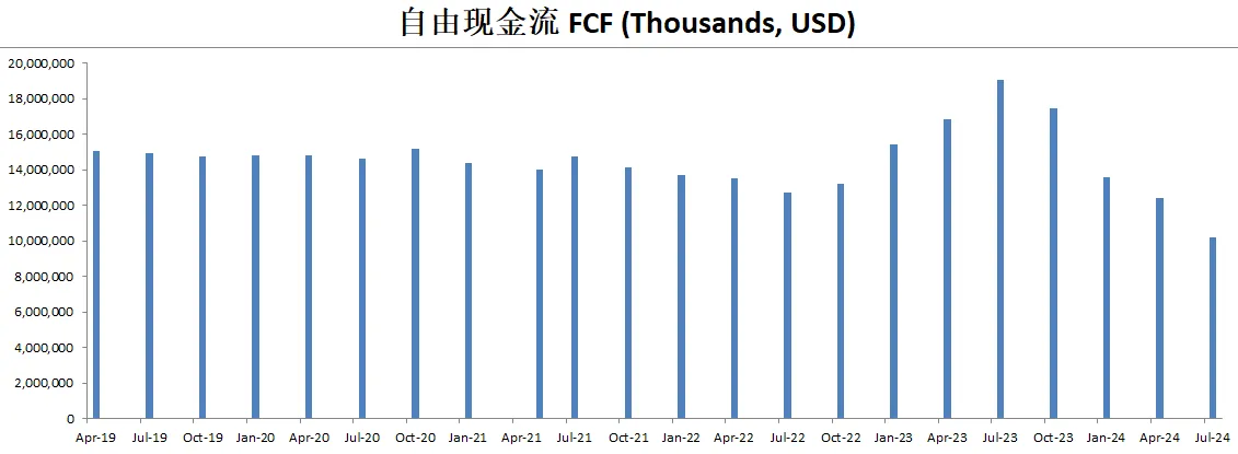 FCF 12个月有12.41B,5年CAGR为 -3.8%,同样有所缩水
