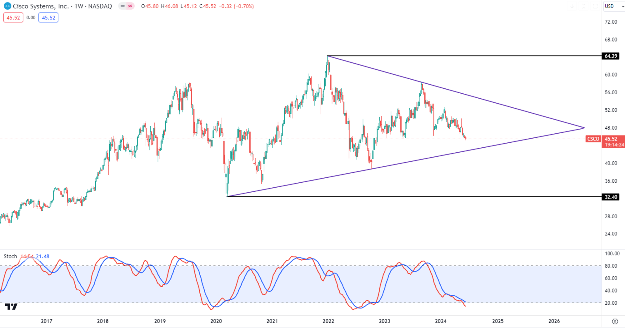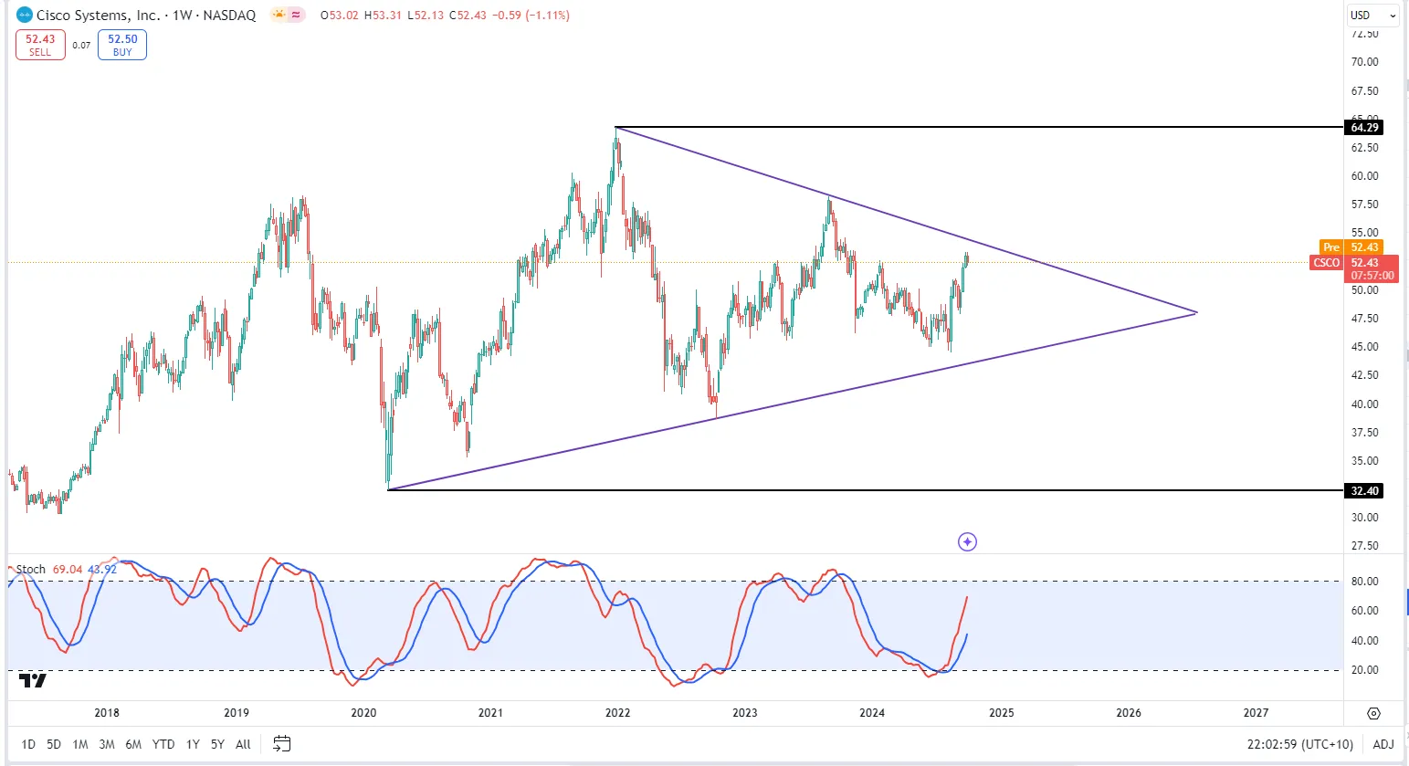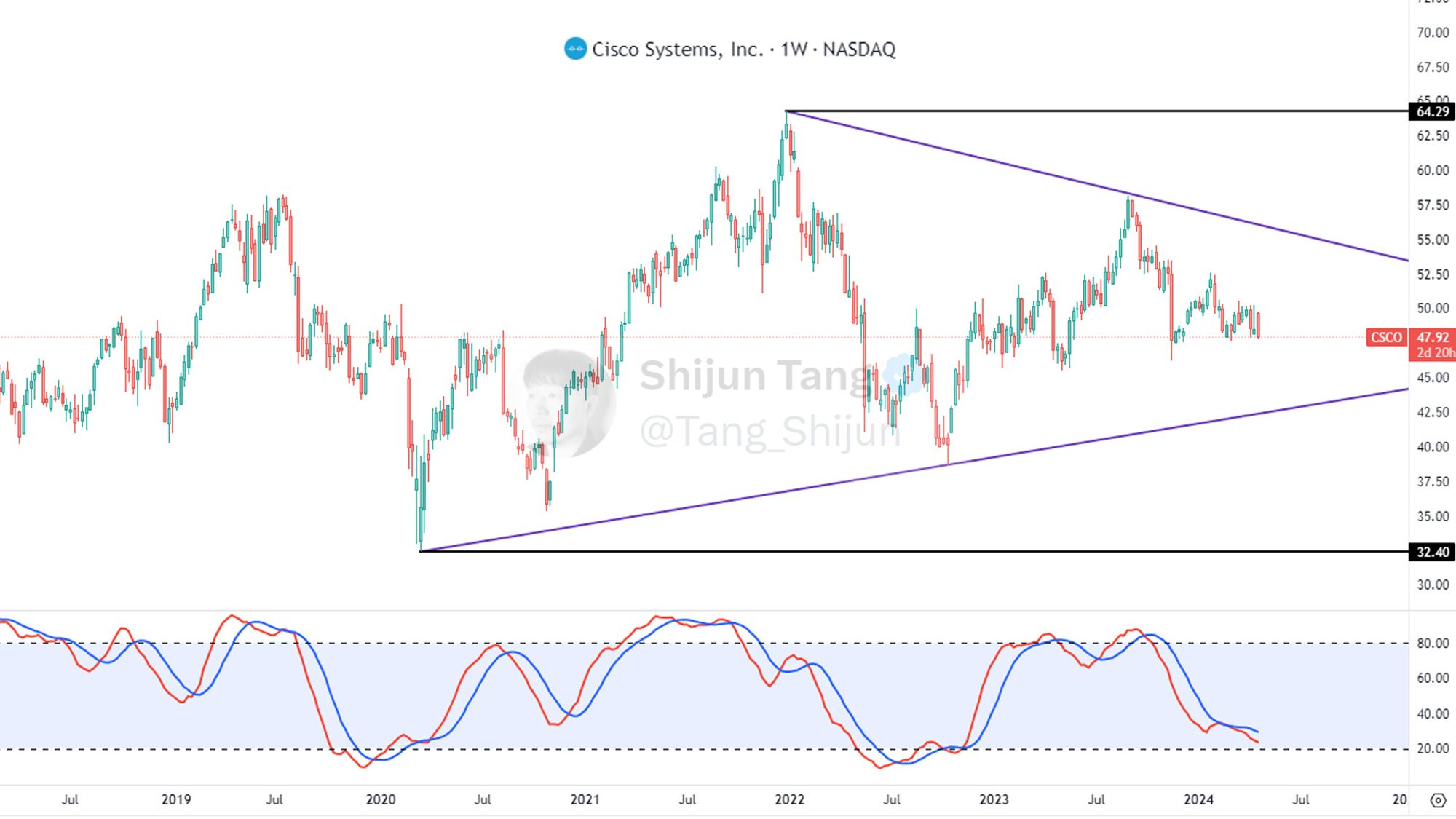 思科( $CSCO )时隔8800多天,距离2000年的历史峰值仍然差44.98%