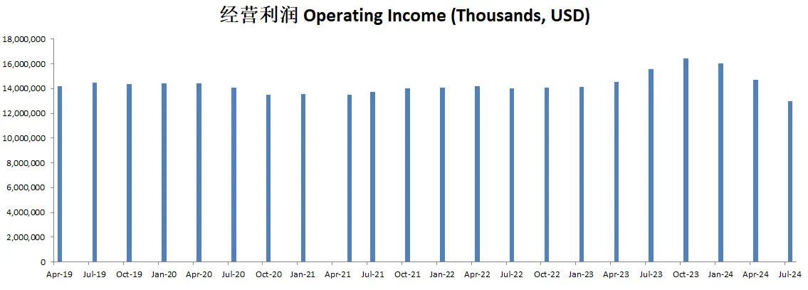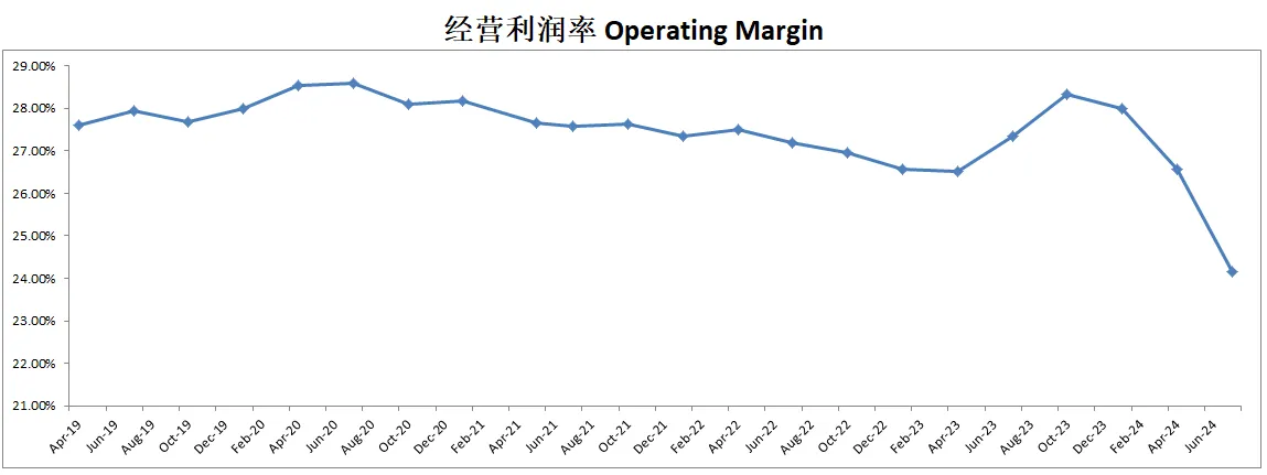 -经营利润同样也是连续3个季度缩水,目前利润率有24.15%