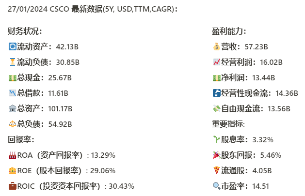 公司自我定位也很准确,专注股东利益,虽然股价上没法回馈股东,但是思科一直在发股息和进行股份回购
