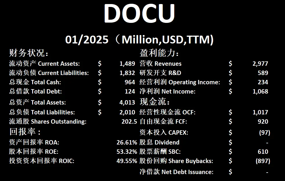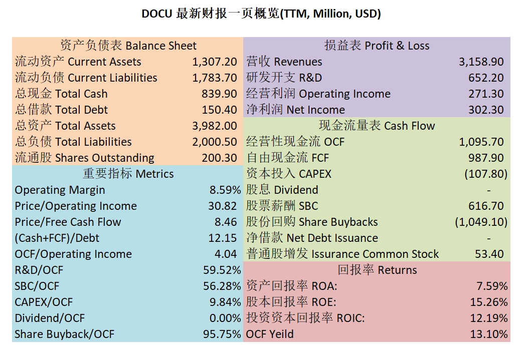 $DOCU 最新财报数据一页概览