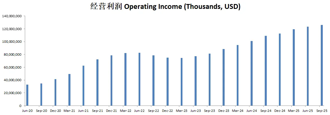 Google Cloud 部门收入 为 120 亿美元,同比增长 30%,其中 GCP(Google Cloud Platform)增长速度远高于整体云业务。云计算的 AI 需求持续强劲,但面临 容量限制,导致公司在 2025 年加速基础设施投资。此外,Alphabet 今年签署了 多笔 10 亿美元以上的大型云计算合同,25 亿美元以上的大型合同数量也同比翻倍。