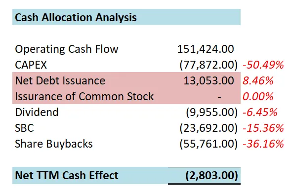 -CAPEX巨大,占FCF的 88.28%
