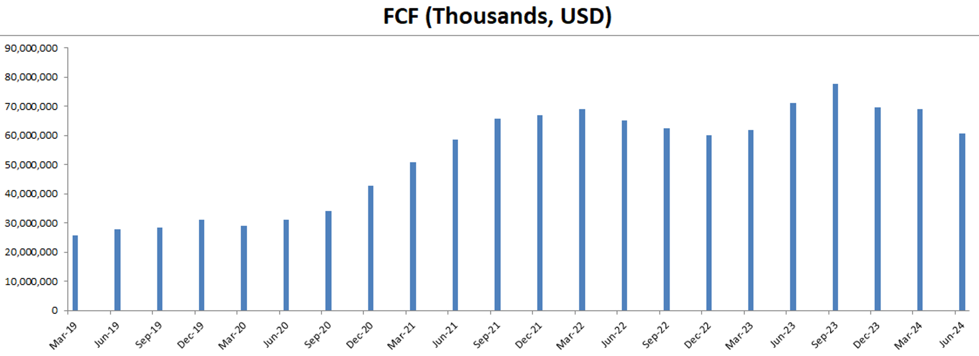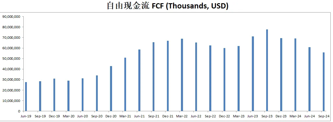 最新FCF 69.11B,5年CAGR22.72%