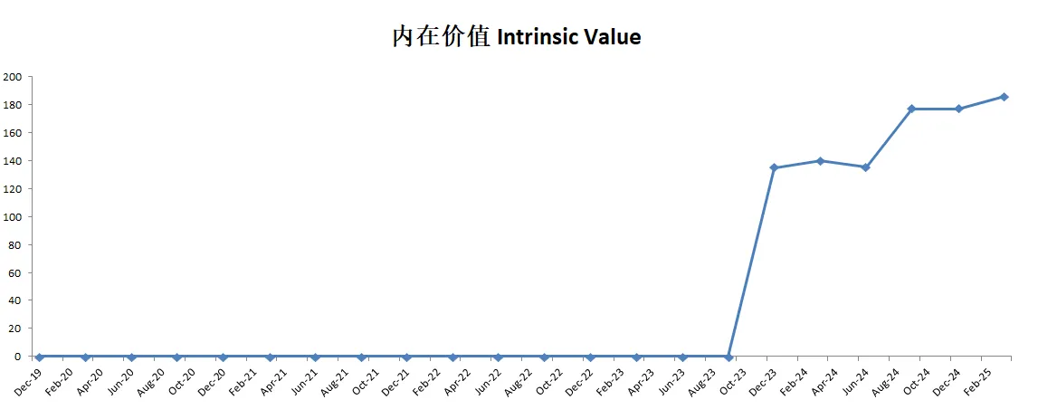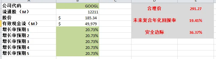 -Google最新财报之后,有效现金流为51.85B,如果按照CAGR 15%来计算(5年来CAGR为19.65%),合理价为185.90。