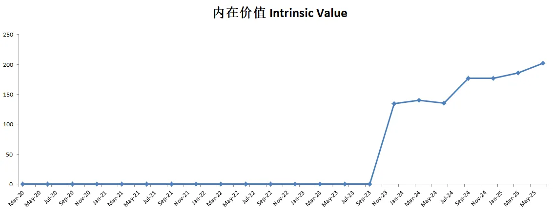 -最新有效现金流为43.56B,如果按照15%的CAGR(5年CAGR有18.29%),合理价算出来为201.95。
