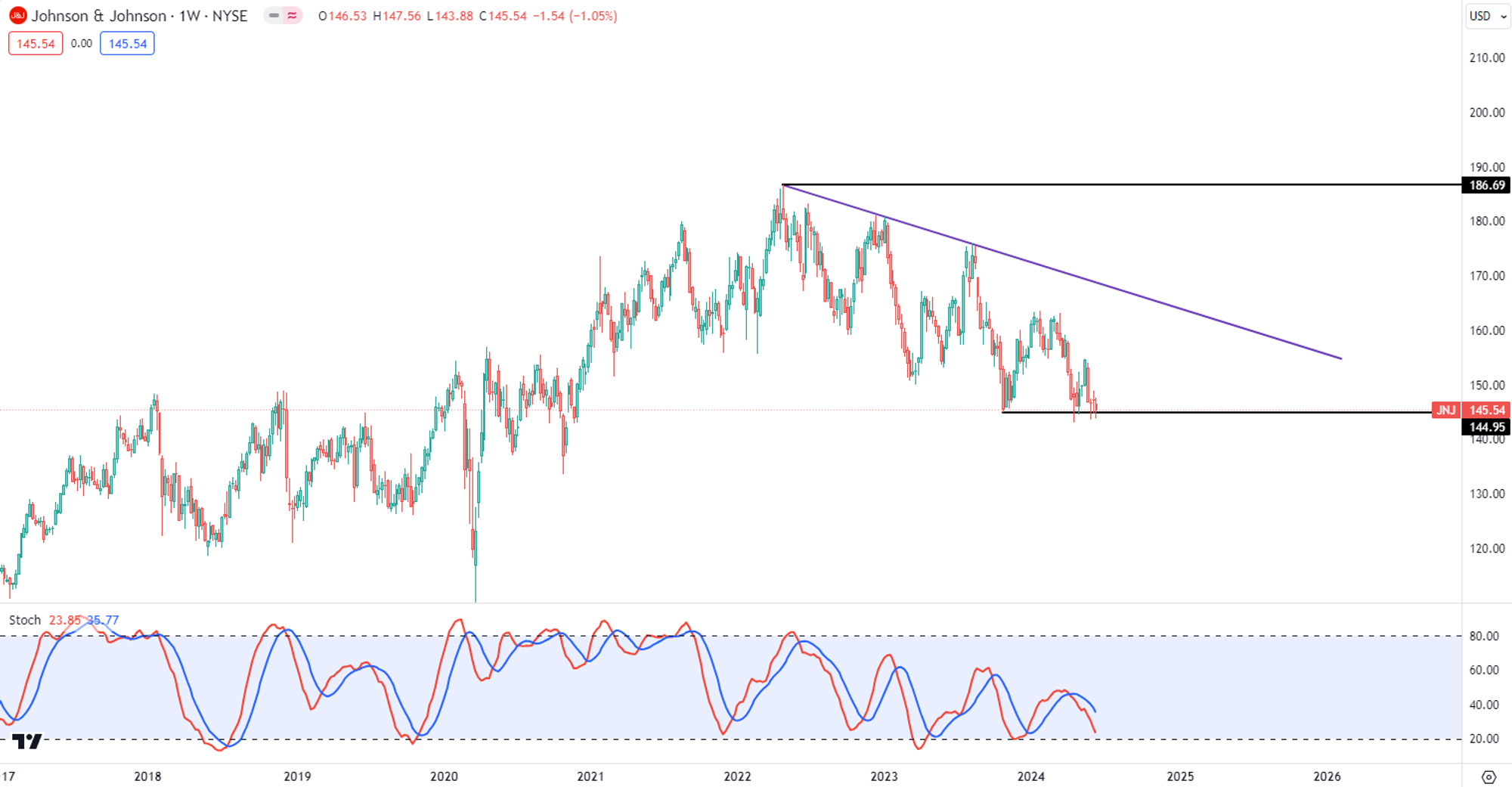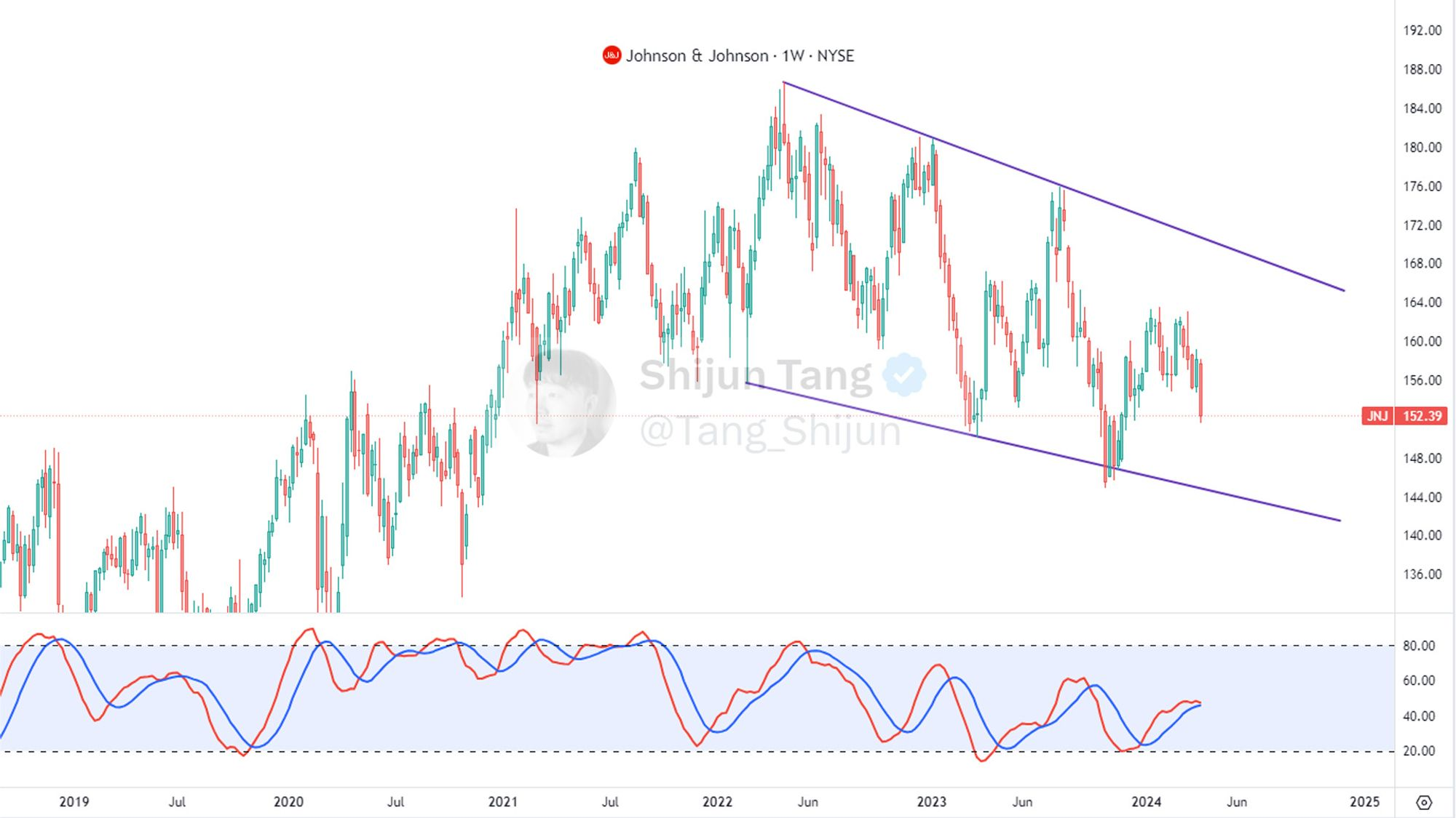 强生( $JNJ )自从站上186.69的历史新高之后,已经跌了23.33%