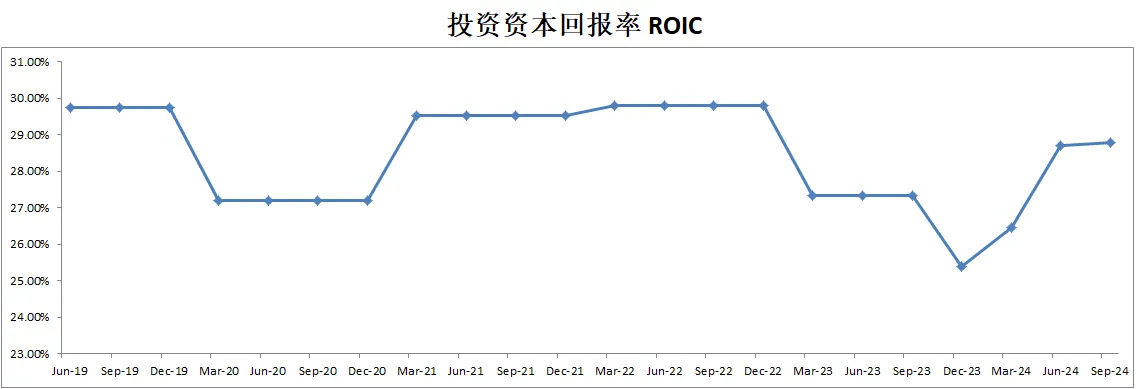 回报率仍然很亮眼,保持不错,ROIC为27.14%