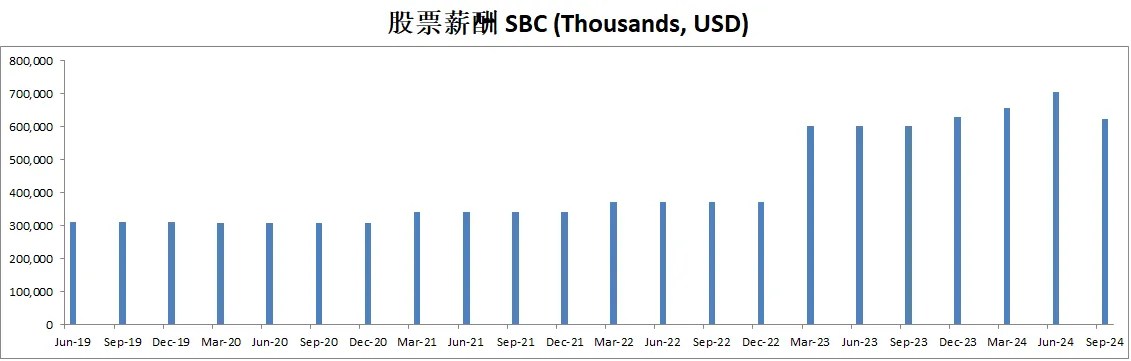 -SBC已经增加到了656.7M,5年来CAGR有15.96%