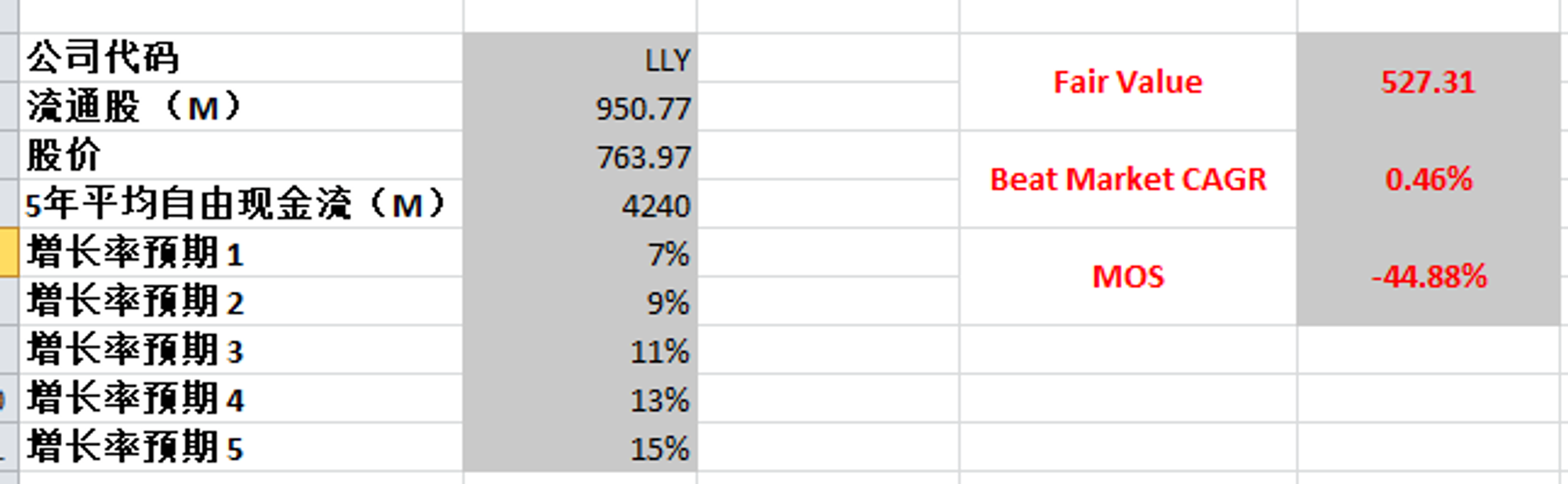 FCF最新是负的,我决定从OCF来看,套入最新OCF 4.24B,最高使用CAGR15%,合理价527.31
