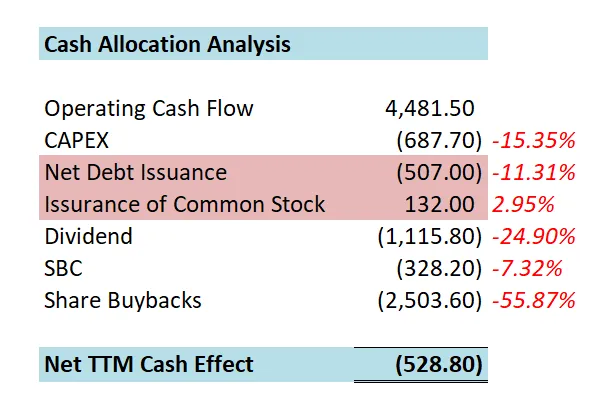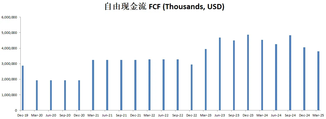 -股份回购占FCF 65.99%,这个占比特别高。大部分的现金都是用来回购股份了。