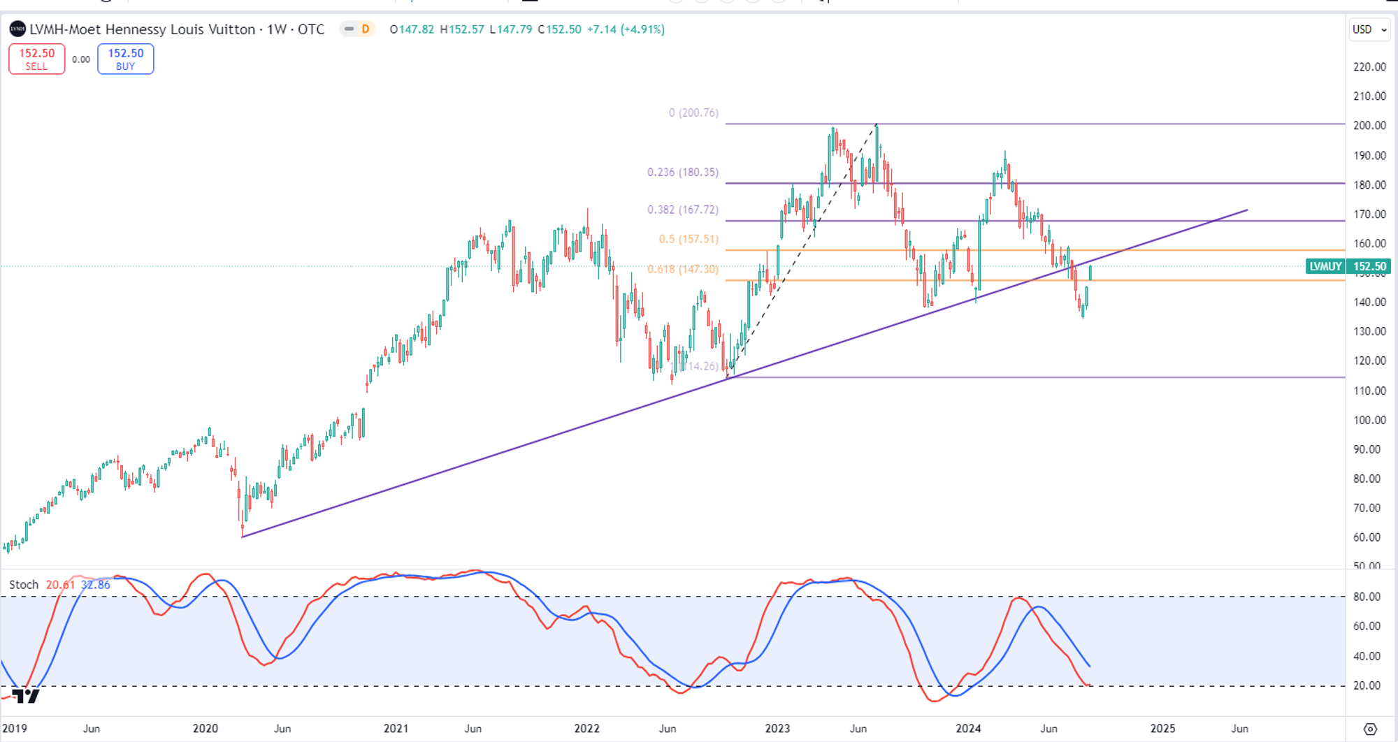 LVMH( $LVMUY )140多天,跌了29.91%。