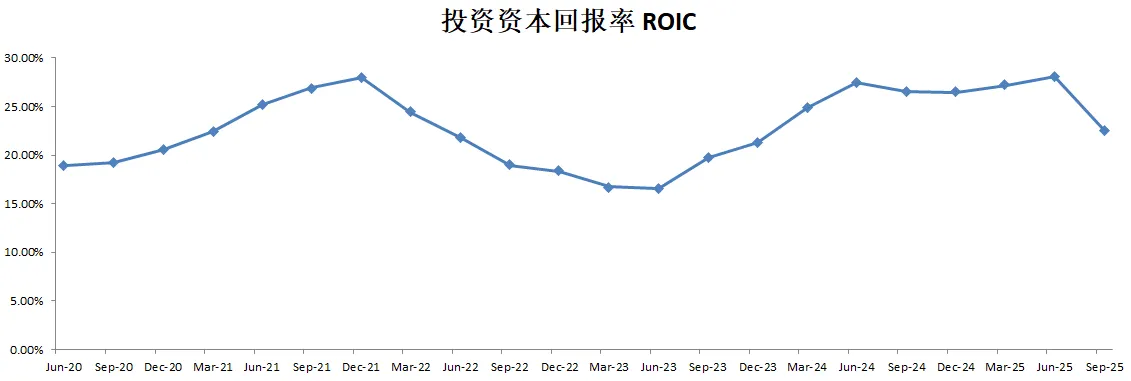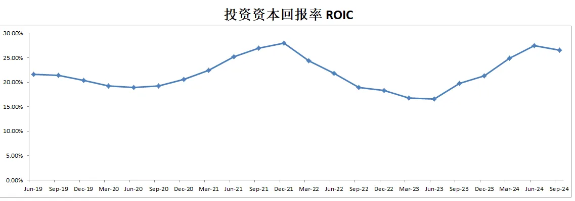 3项回报率在上个季度的基础上进一步增长,目前ROIC来到了34.42%