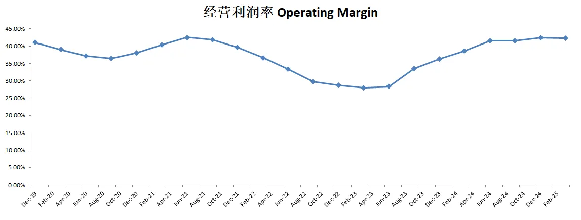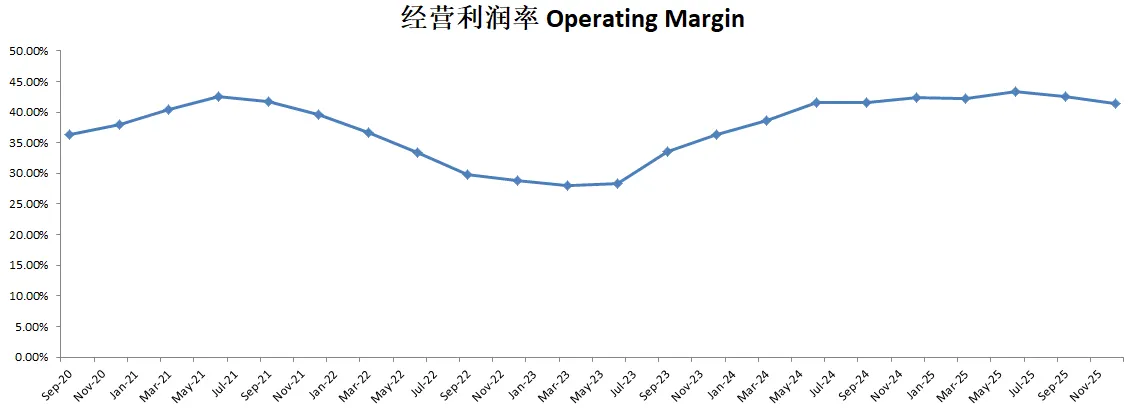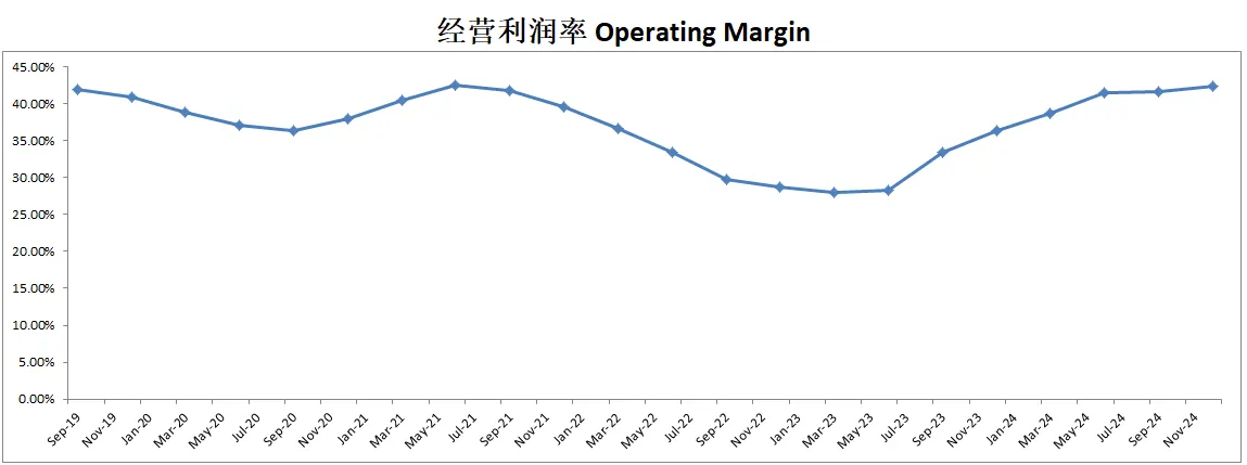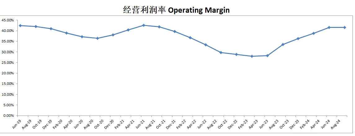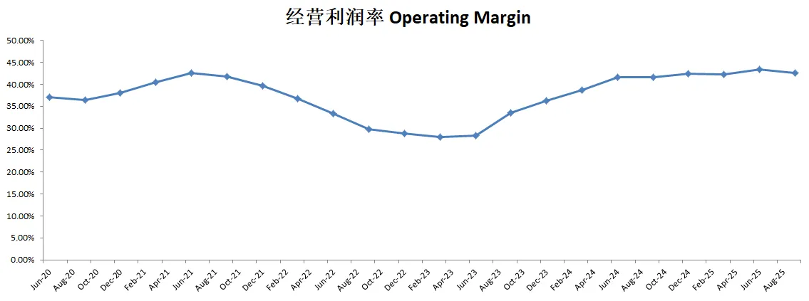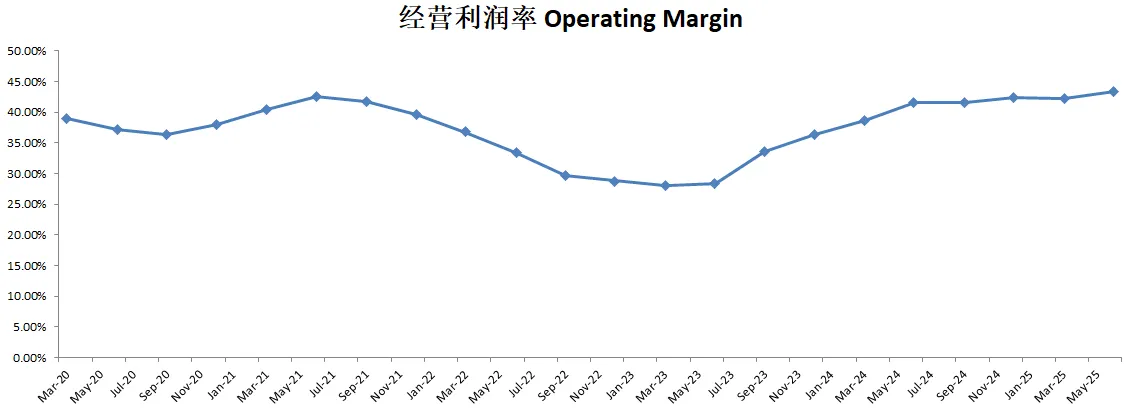 -营收刷新新高,经营利润刷新新高,利润率目前来到了43.37%