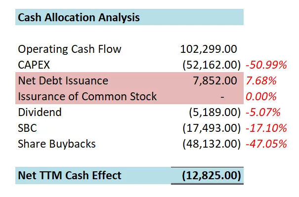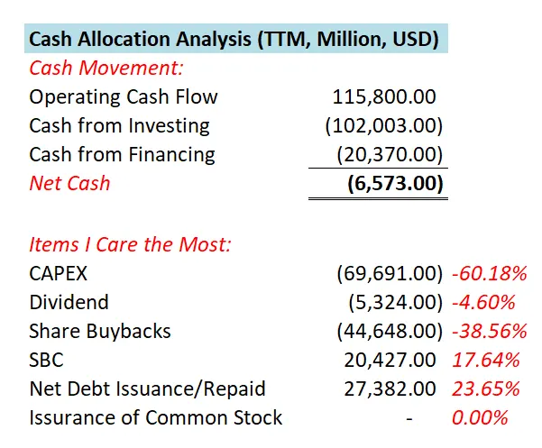 -META目前的现金安排很简单,一半CAPEX,一半股份回购