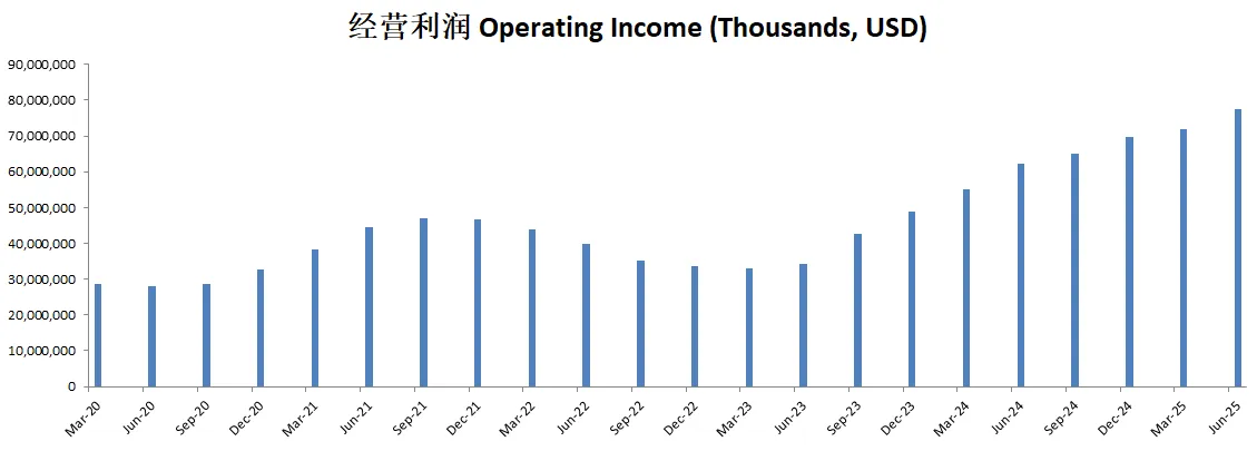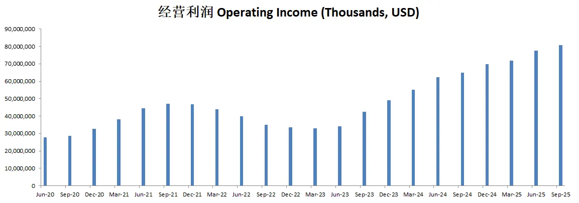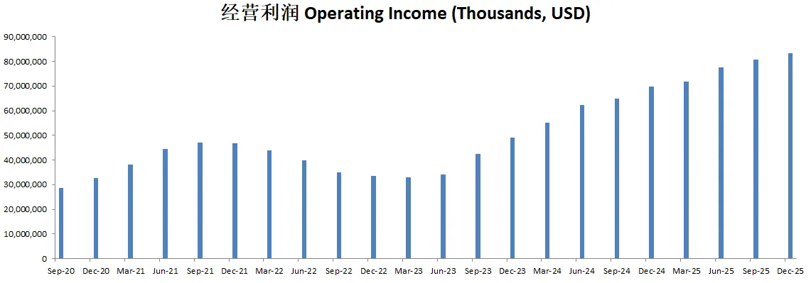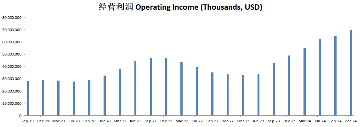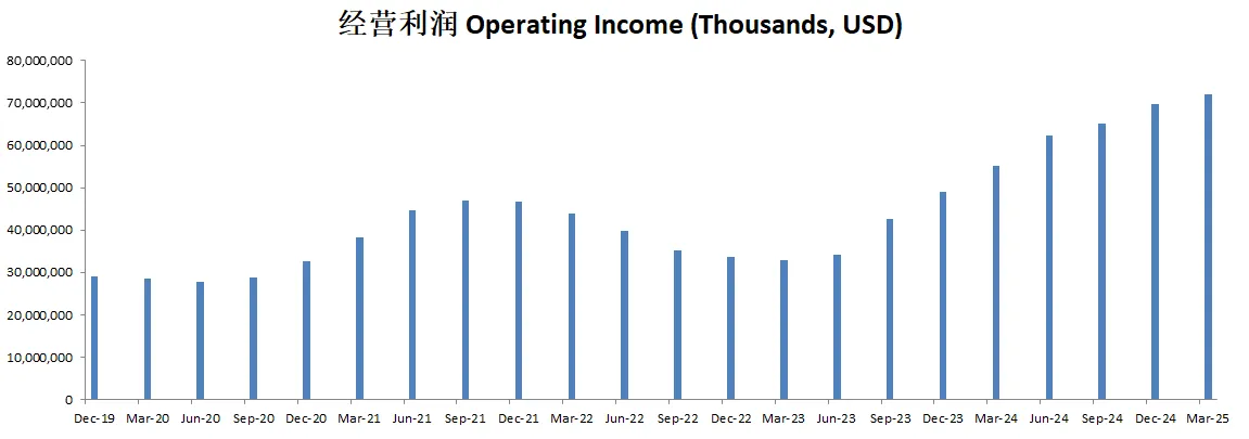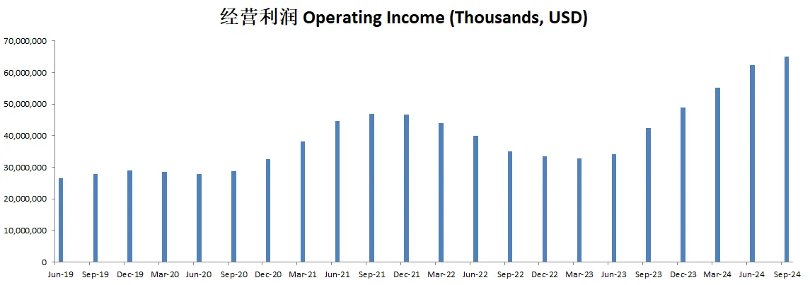 -经营利润刷新新高,并且增长惊人,经营利润率已经来到了41.56%(上个季度是34.42%)