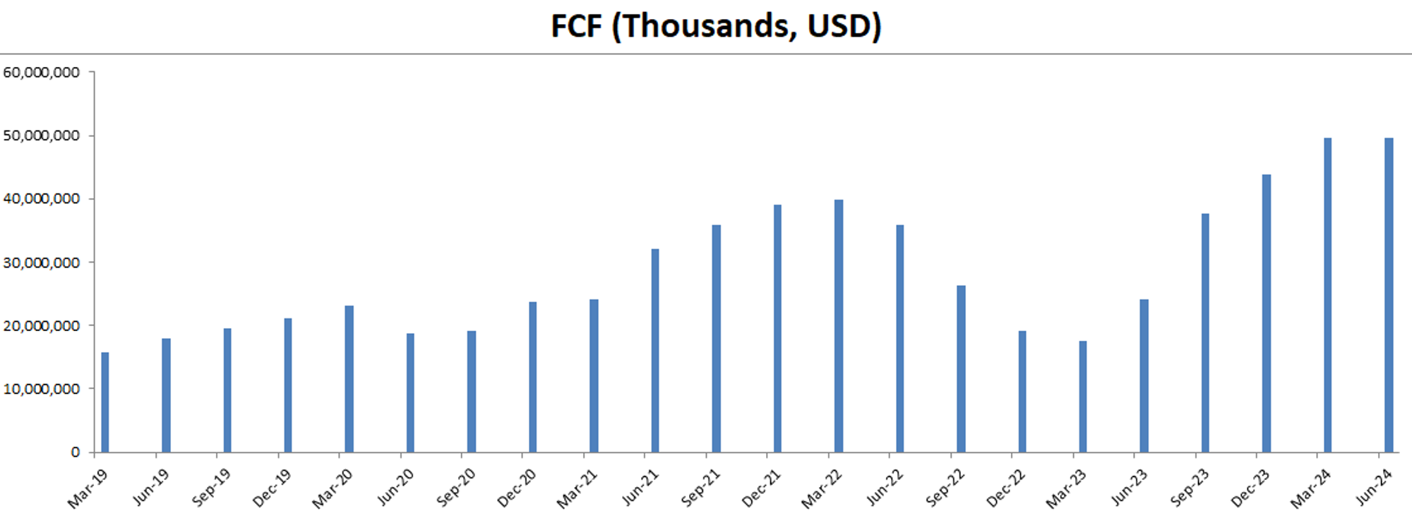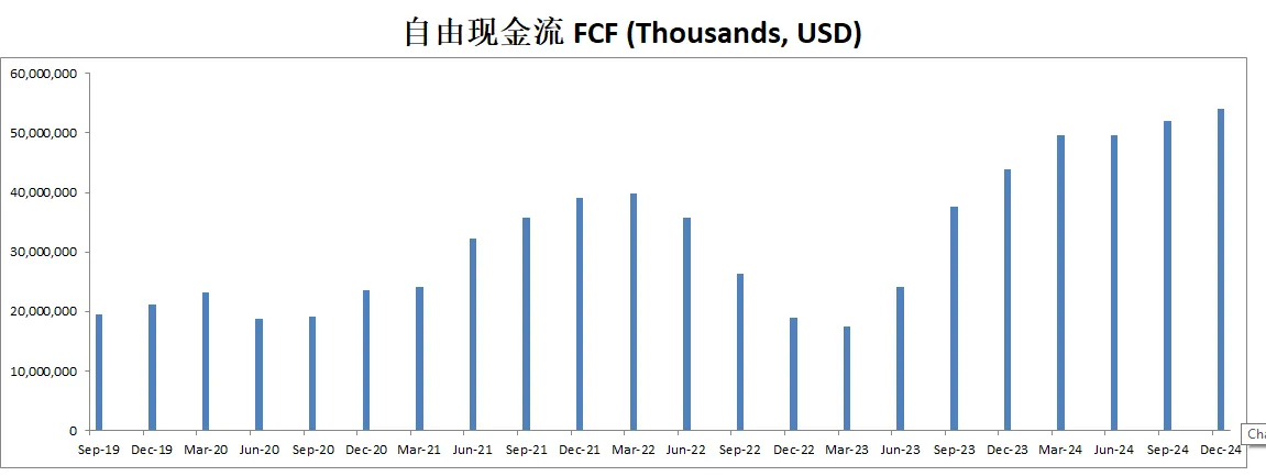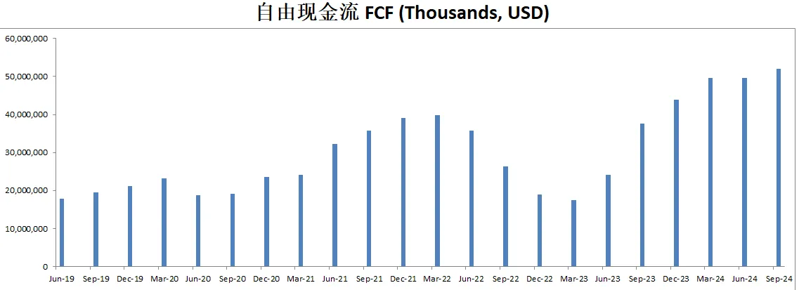 最新FCF49.54B,5年CAGR有19.64%