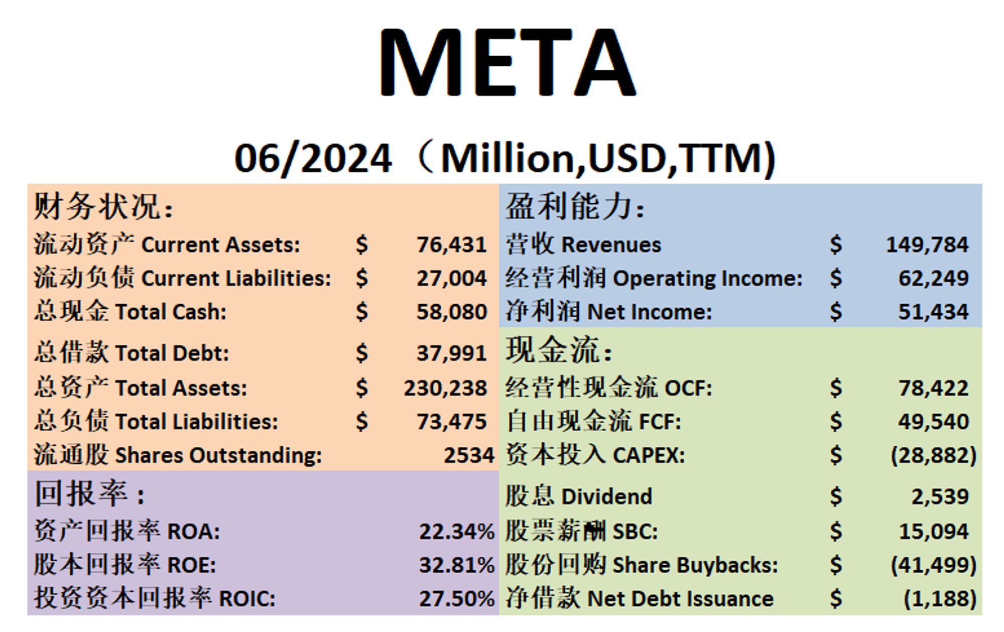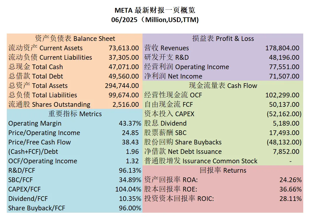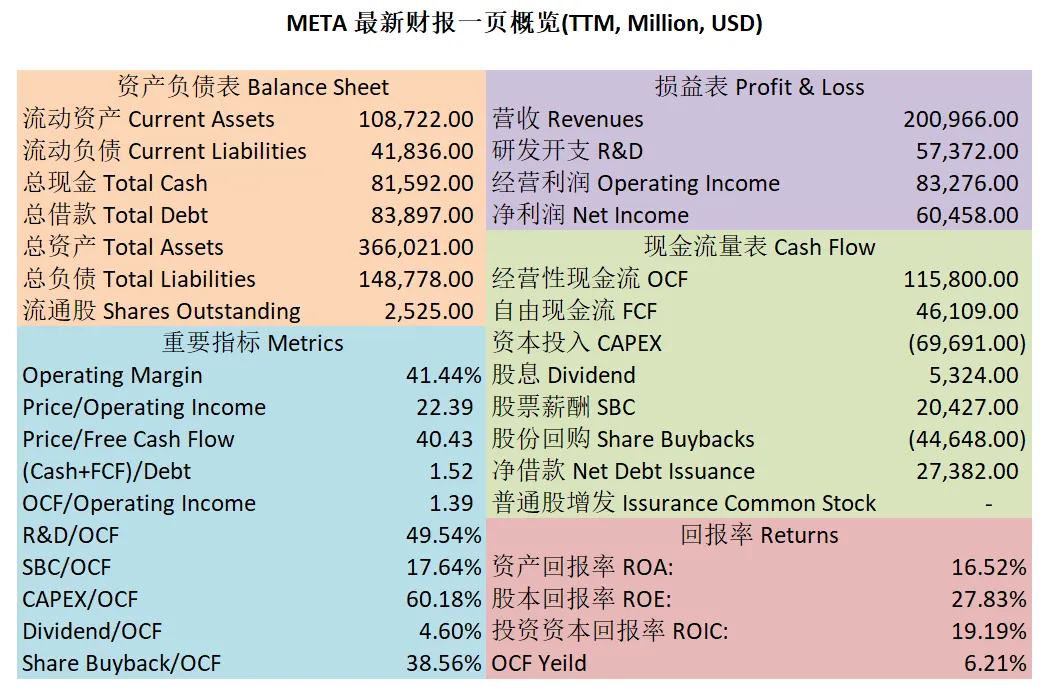 $META 最新财报一页概览