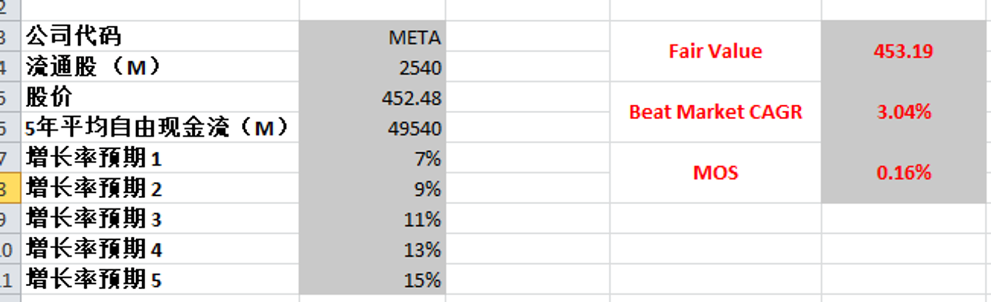 如果我使用最新FCF,但是最高只用15%的话,合理价为453.19,我认为这个更为合适