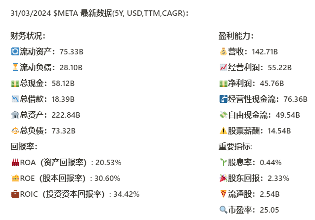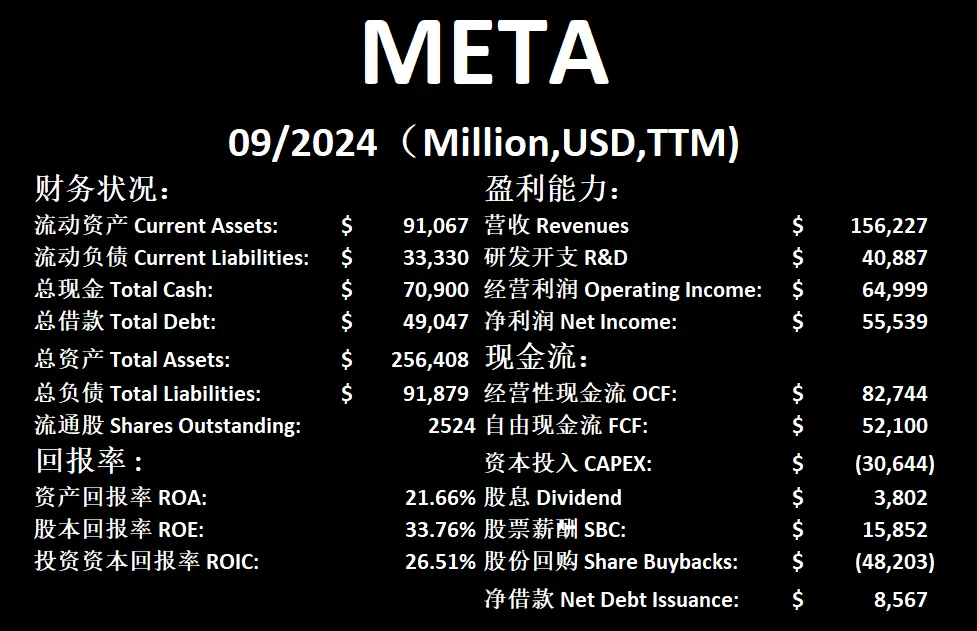 昨天META更新了最新季度财报,我们来看看截至24年6月META的表现如何