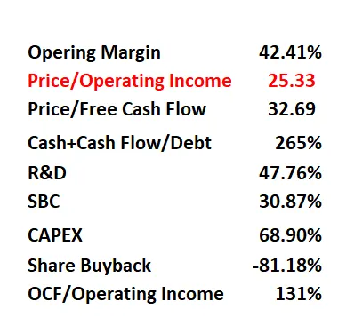 -而且Price/Operating Income才25.33,我反而觉得目前的价位也不算太贵。