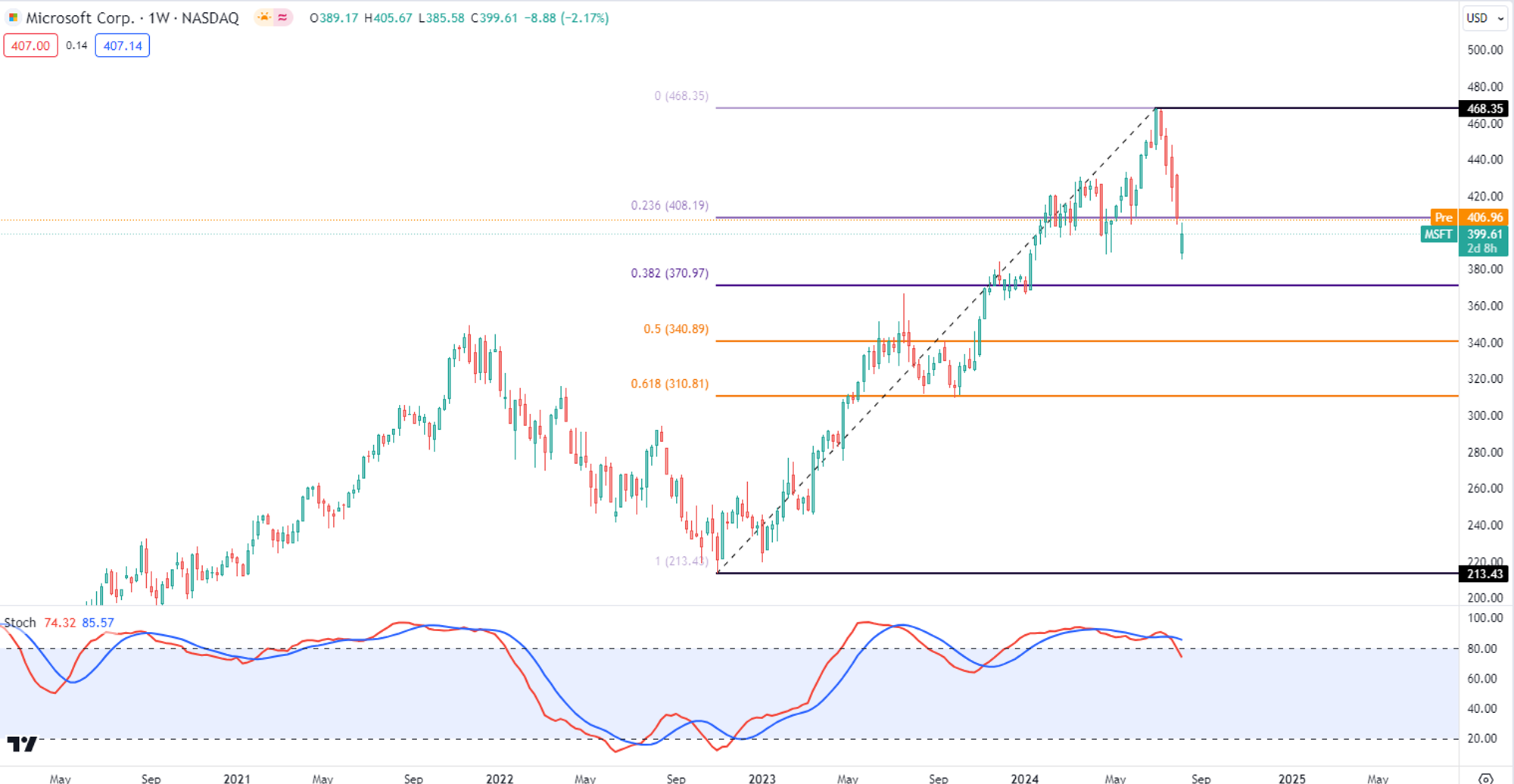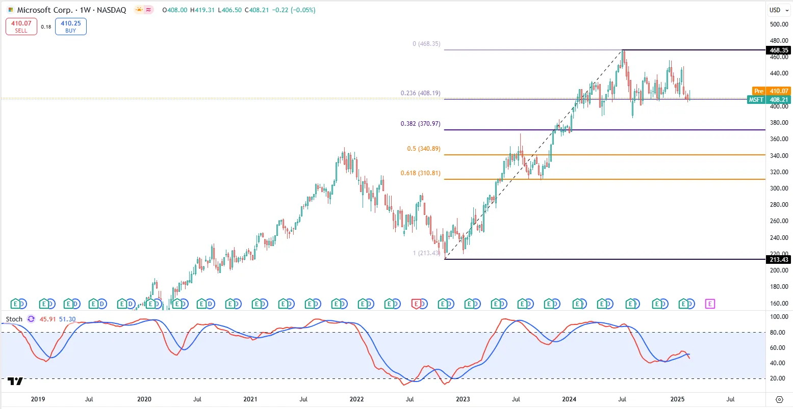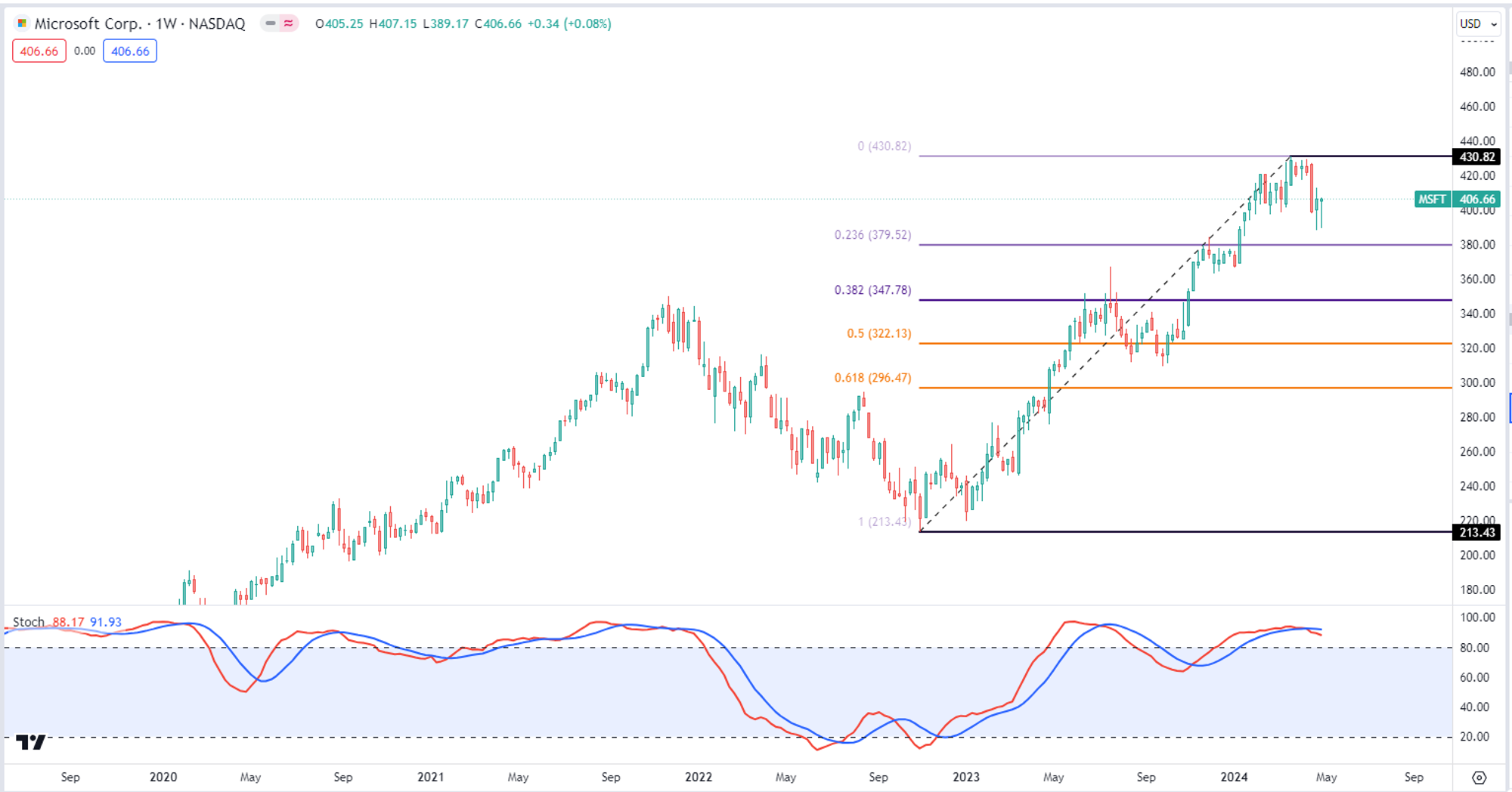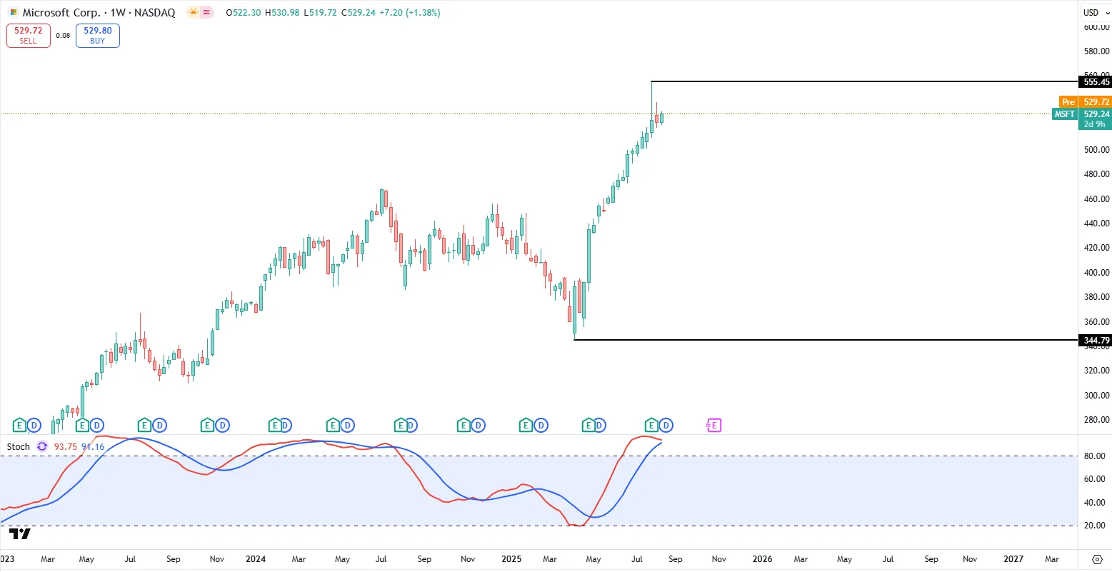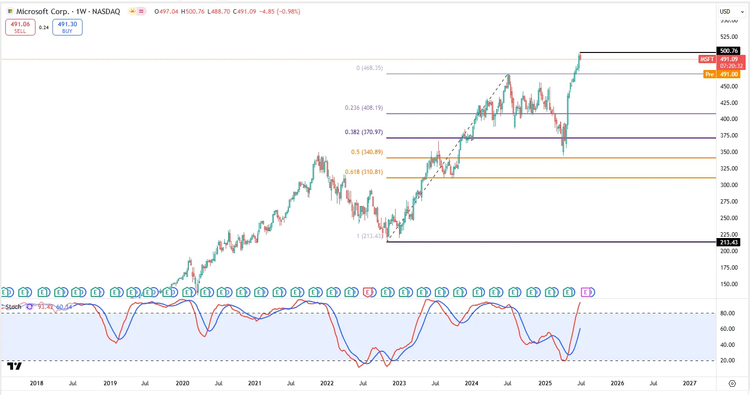 技术面来看,目前微软已经在随机指标超买区域371天了